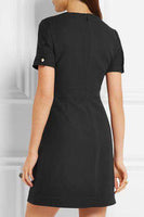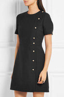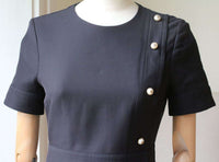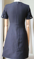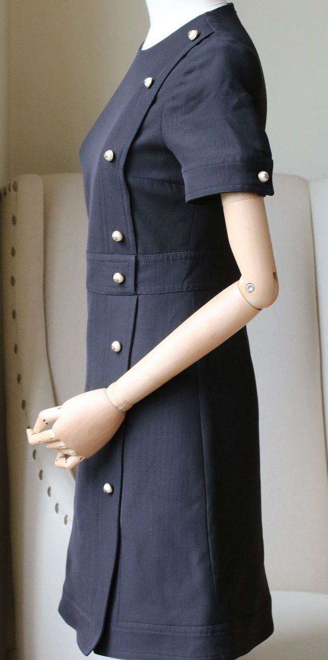 Gucci Dress. Alessandro Michele delves into the Gucci archive when designing every new collection. Blended from wool and silk, this mini dress is punctuated with a row of faux pearls featuring the burnished gold 'GG' motif - a house signature that dates back to the '60s. This satin-lined style has a universally flattering silhouette, with a nipped-in waist and gently flared skirt. Black wool and silk-blend. Concealed hook and zip fastening at back. 51% wool, 49% silk lining: 71% acetate, 29% silk. Size: UK 6, US 2, IT 38, FR 34 RRP: £1,330 Ref: SK24