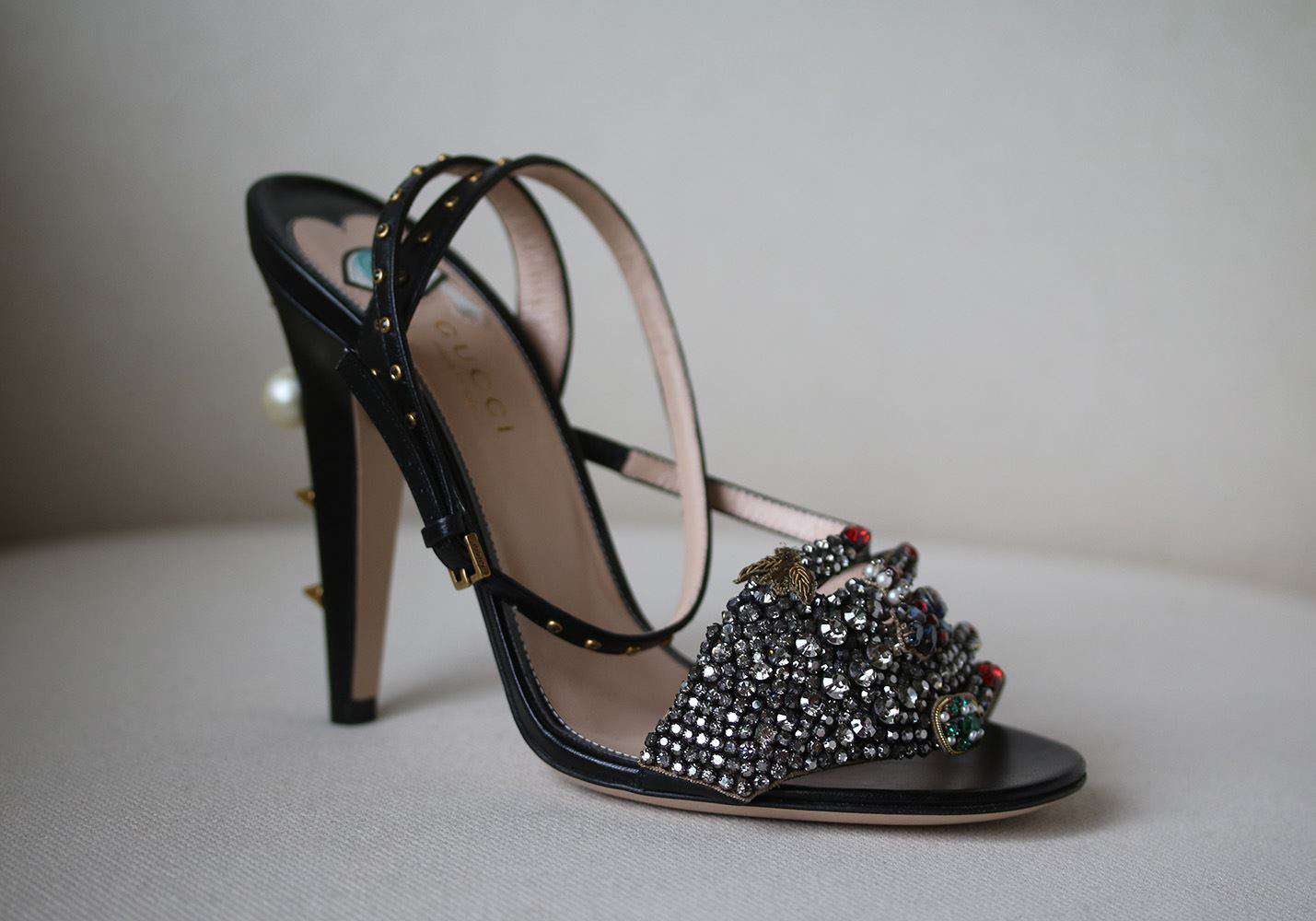 GUCCI CRYSTAL HAND APPLIQUE EMBELLISHED SANDALS EU 37.5 UK 4.5 US 7.5