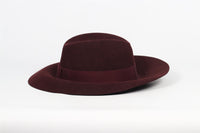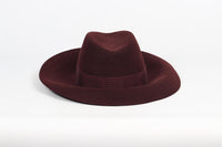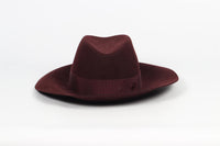 Maison Michel Felt Fedora. Burgundy. Does not come with - dustbag or box. 100% Felt. Large (62 cm). Circumference: 62 cm. Brim Width: 10 cm.