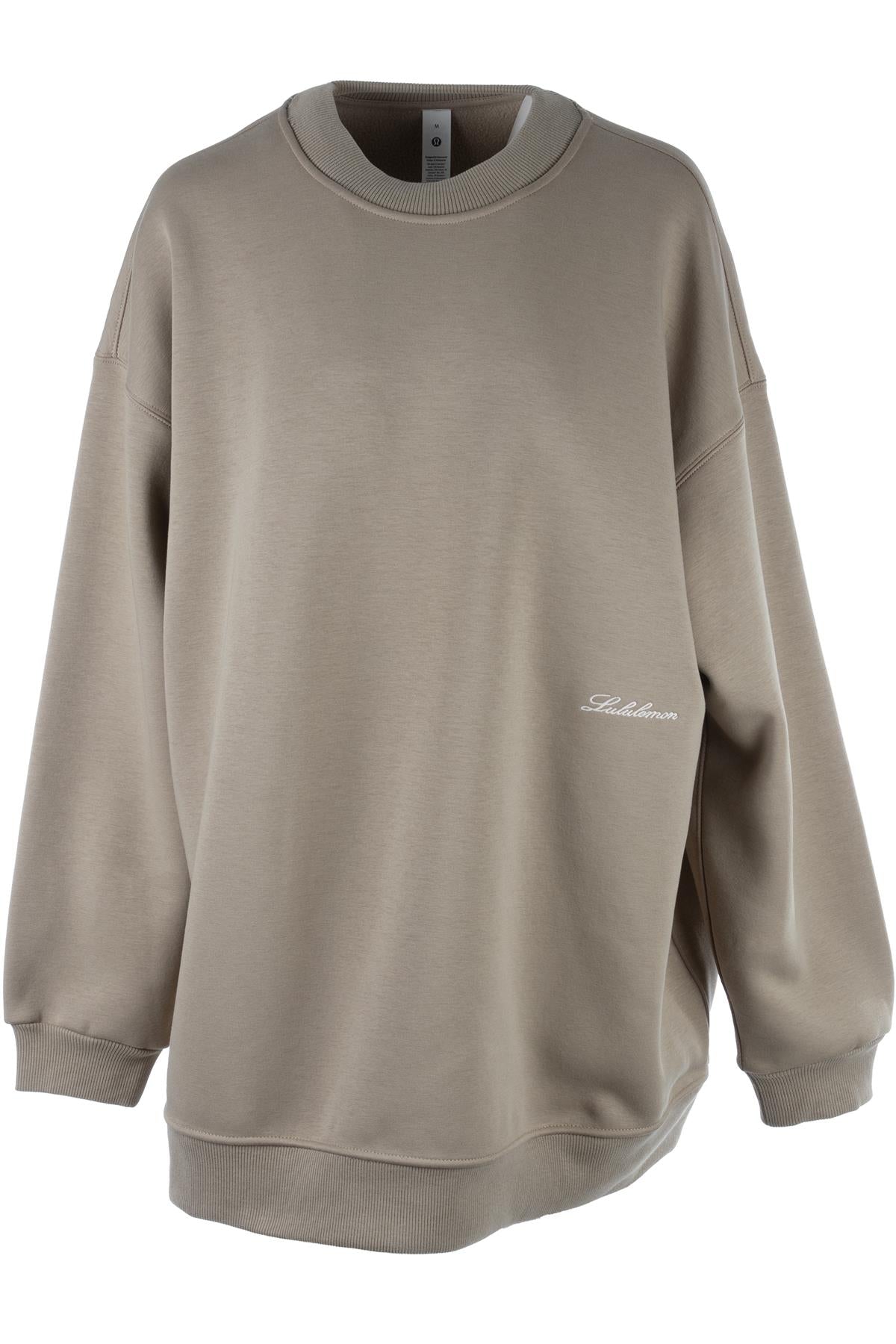 Lululemon Beige Cotton Sweatshirt. Beige. Long Sleeve. Crewneck. Pull on. 66% Recycled Polyester, 29% Cotton, 5% Elastane. Medium (UK 10, US 6, FR 38, IT 42). Bust: 48 in. Waist: 45 in. Hips: 40 in. Length: 27 in.