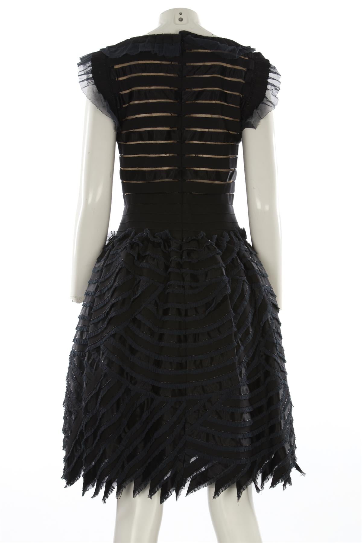 Oscar De La Renta Black Tulle Dress. Black and navy. Short Sleeve. Sweetheart. Zip fastening - Back. 100% Cotton, 100% Nylon. US 4 (UK 8, FR 36, IT 40). Bust: 28 in. Waist: 27 in. Hips: 46 in. Length: 41 in.