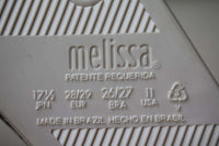 Surf, sand, and sun is all you need wearing the Mini Melissa Mel Beach Slide 3B II sandal. Man-made upper. Slip-on construction. Open toe silhouette. Man-made lining and insole. Synthetic outsole. Signature fruity scent. Made in Brazil. Size: EU 28/29 (UK 10, US 11)