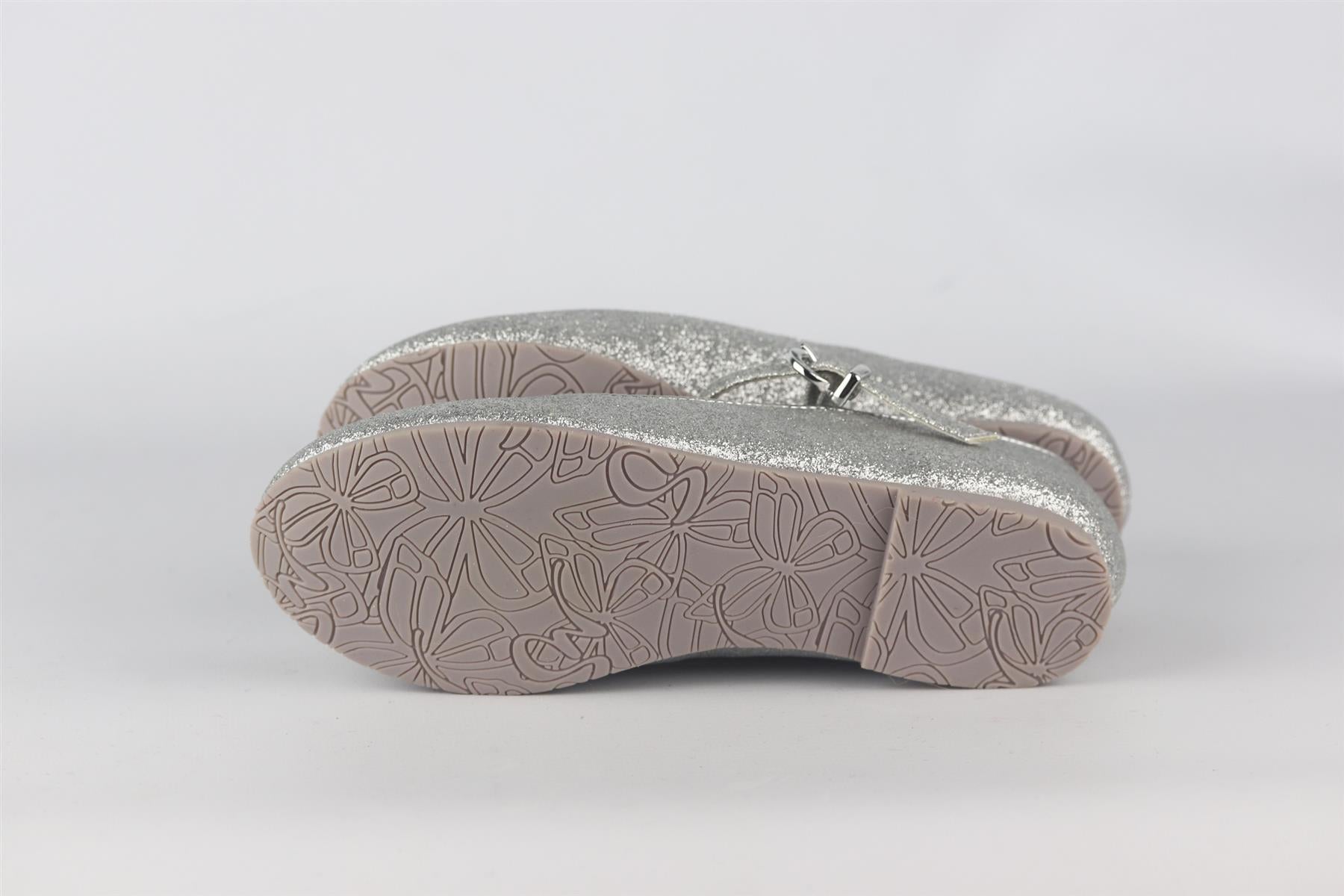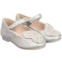 - Girls silver glitter shoes from Sophia Webster Mini, with silver embroidered leather butterfly wings.