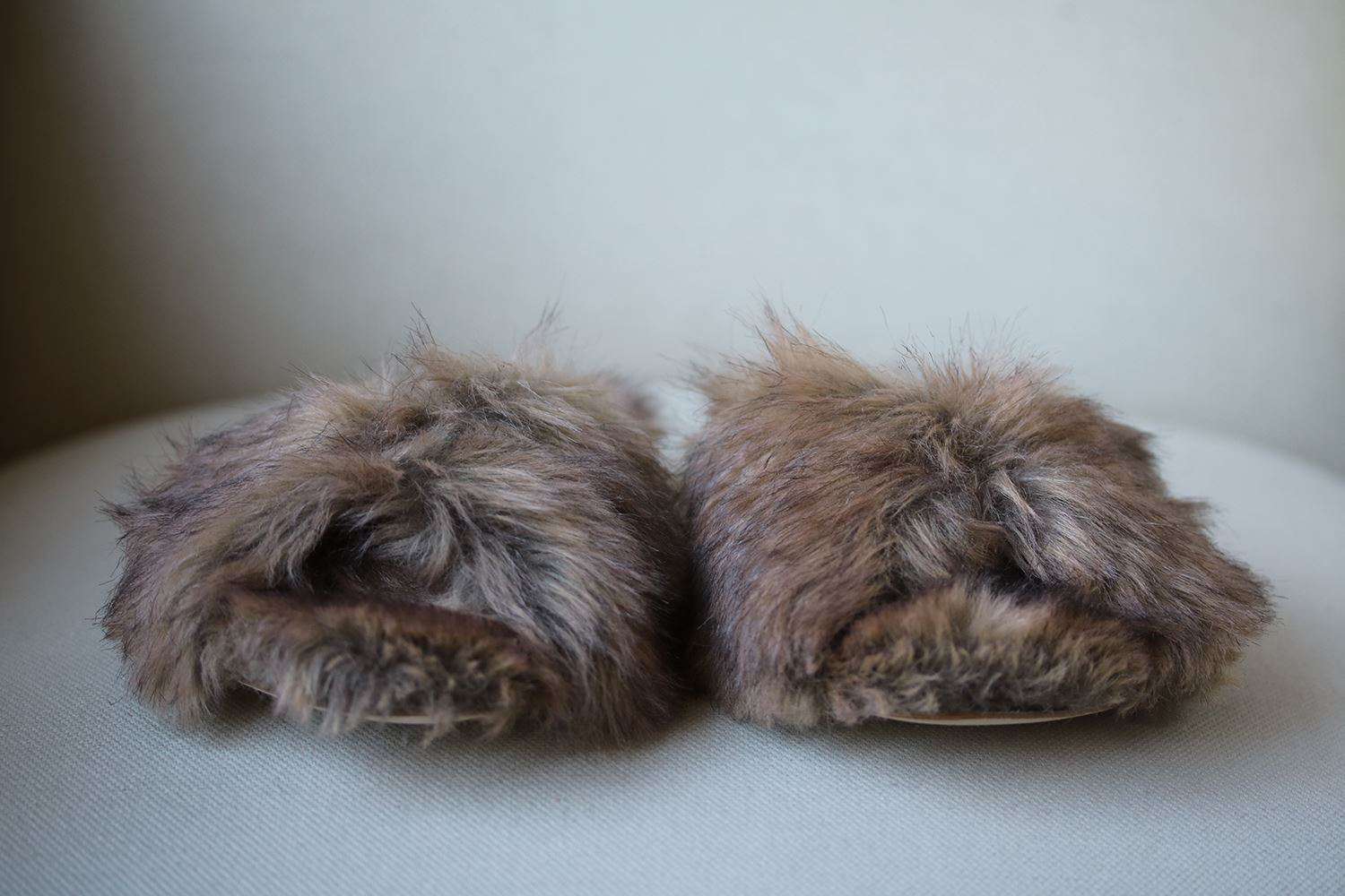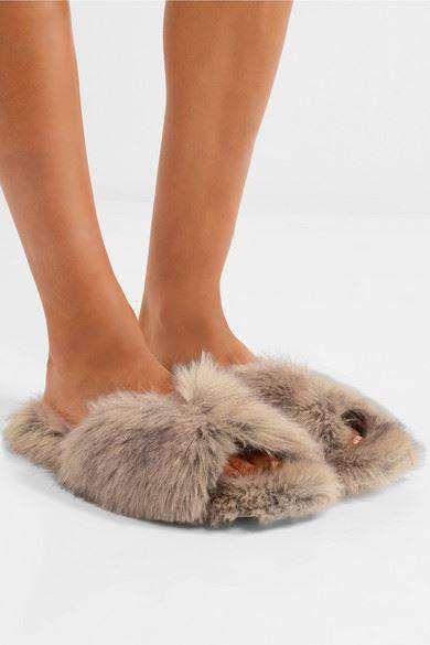 We first spotted these cool slides on Simone Rocha's Fall '17 runway. Made from tactile tonal-beige faux fur, they have crisscross straps and padded leather insoles for added comfort. Slight heel. Tonal-beige faux fur. Slip on. Made in Italy.