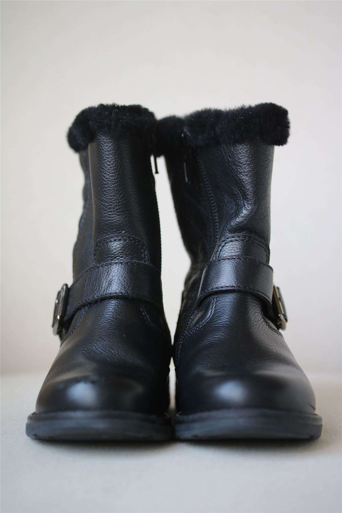 DIOR GIRLS BLACK LEATHER BOOTS WITH SHEARLING LINING EU 24 UK 6