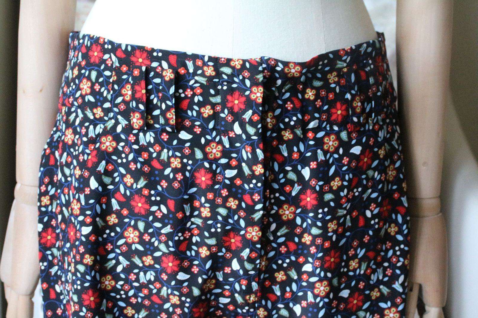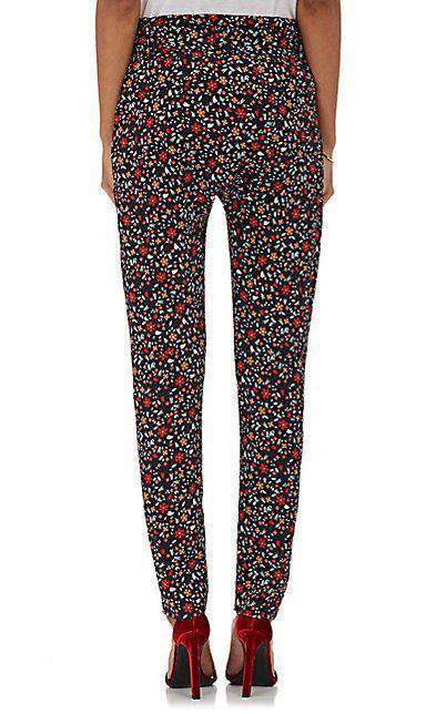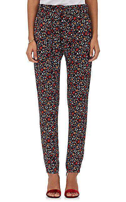 A.L.C. Trousers. A.L.C.'s black and floral multicolored floral-print silk crepe Ansel pants are finished with a self-tie belt. Bandless waist. Belt loops. Quarter-top pockets. Flap back pockets. Size - UK 6, US 2, IT 38, FR 34 RRP: £325 Ref: SSW12 and