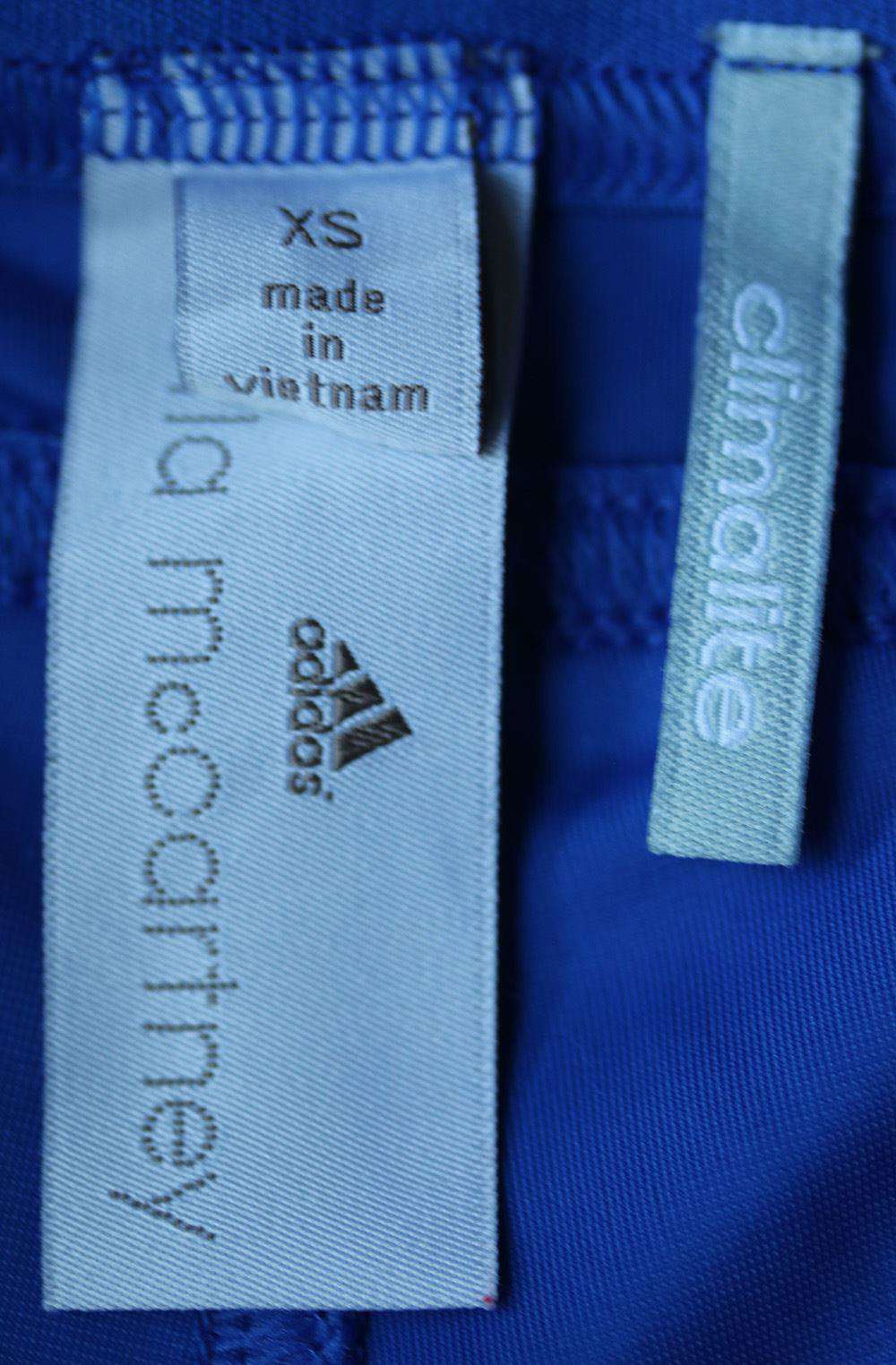 Dark blue 'Studio Zebra' leggings from Adidas by Stella McCartney featuring a cropped length, a skinny fit, an elasticated waistband, an exposed seam detail and a printed logo to the front. Nylon 83%, Spandex, 17% elastane.