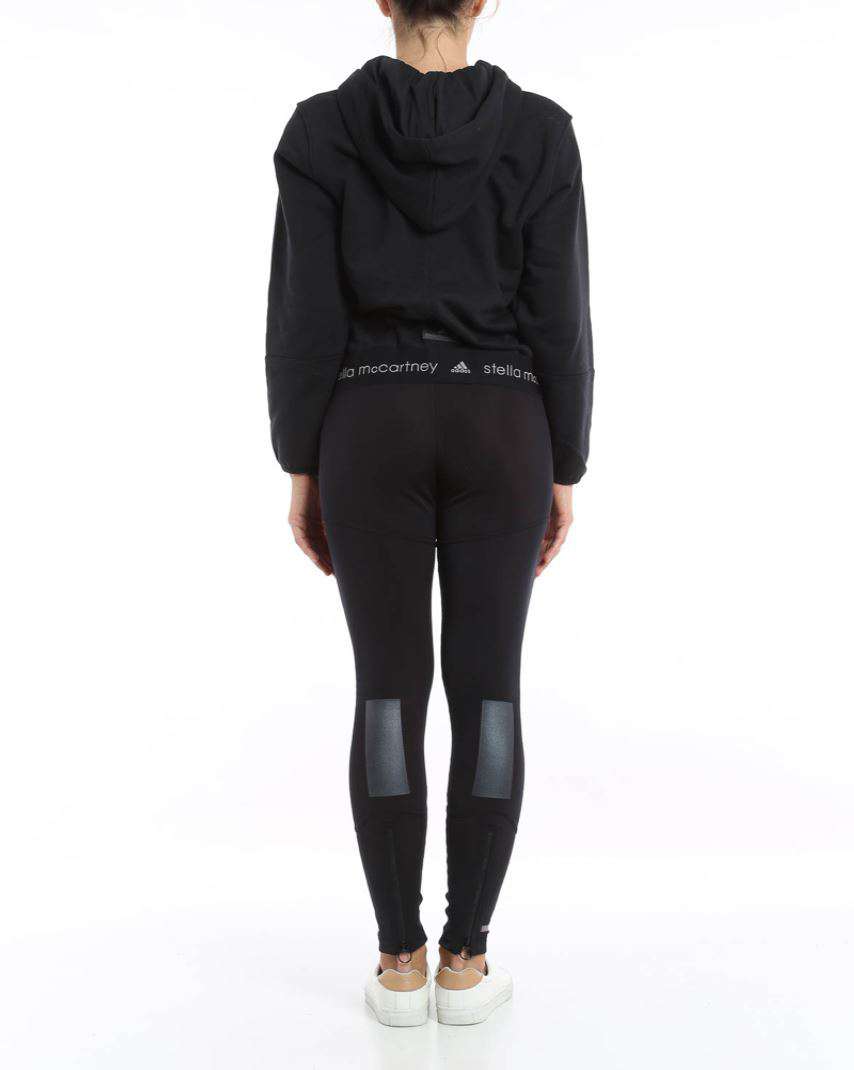 Adidas by Stella McCartney black leggings. Stretch-polyester . Printed elasticated waistband. Pull on. 82% Polyester, 18% spandex.