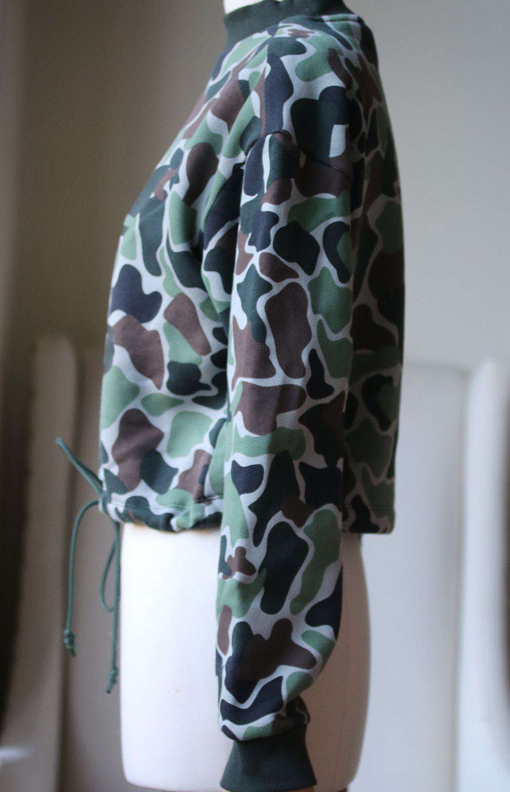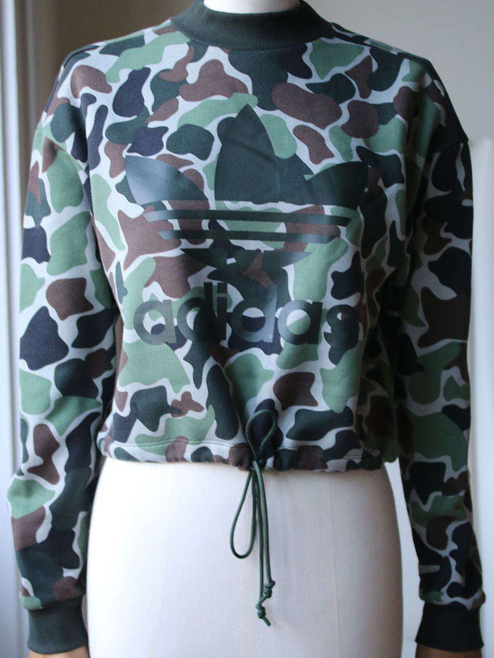This versatile Adidas Originals camo sweatshirt boasts retro details like a cropped cut with a drawstring hem to customise the look. 83% Cotton, 17% polyester fleece.