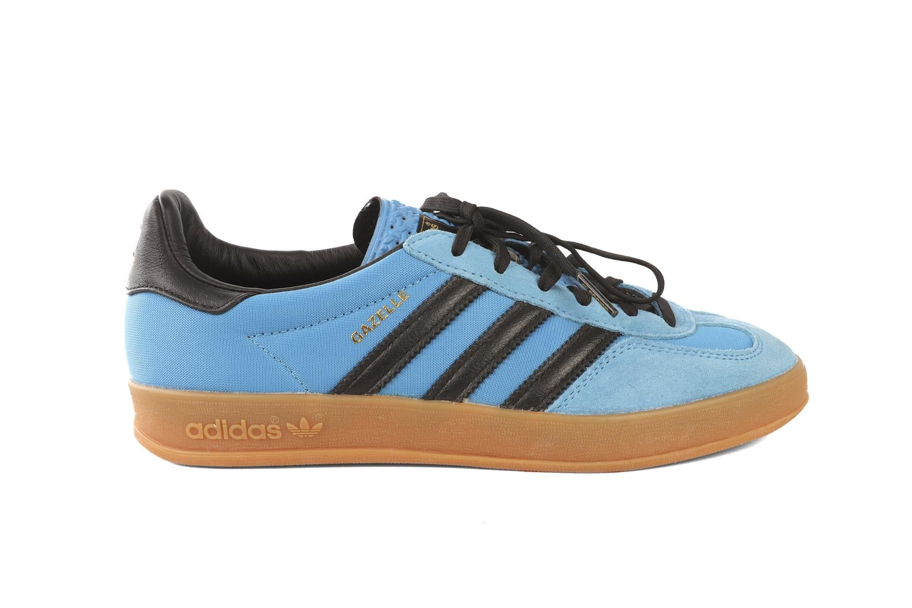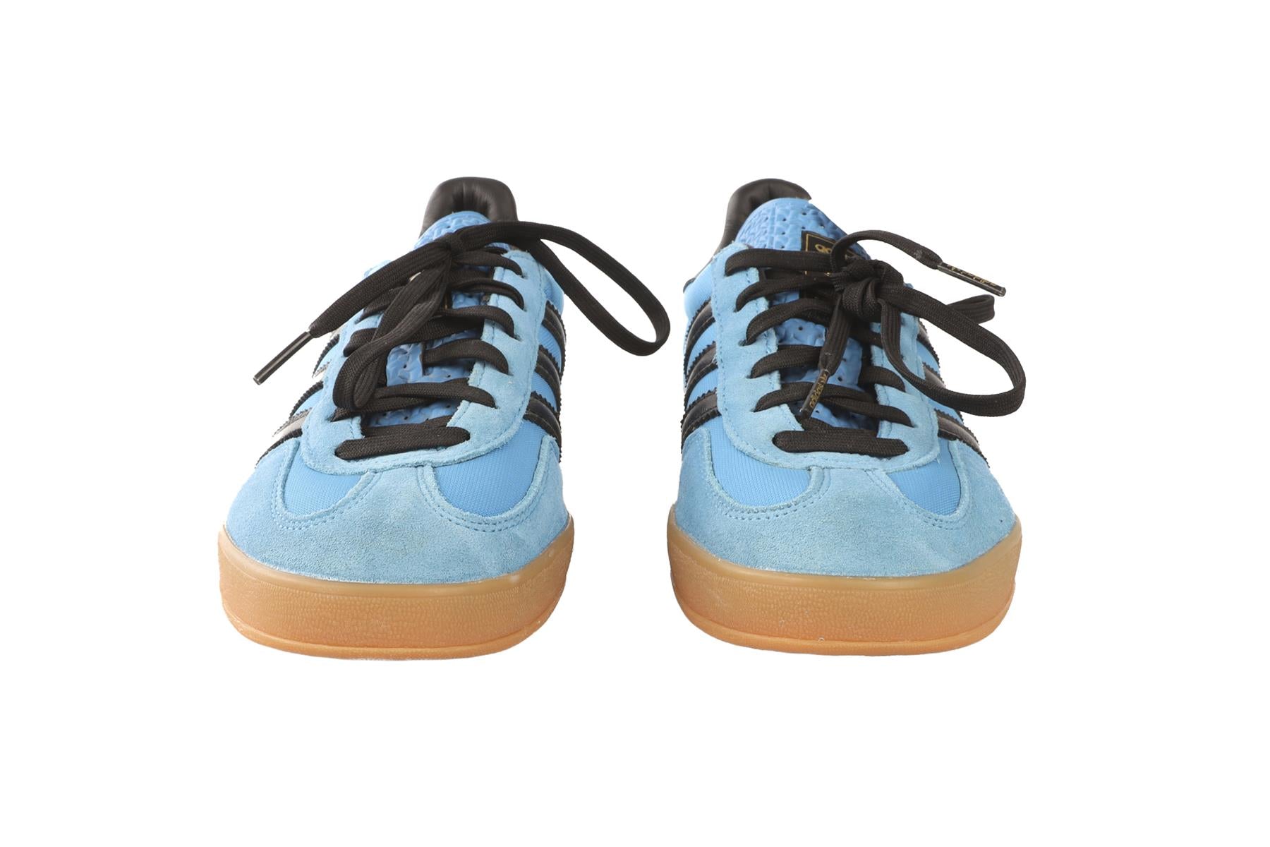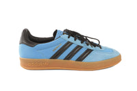 Adidas Blue Gazelle Bright Blue Black Gum Sneakers. Blue and black. Lace up fastening - Front. Does not come with - dustbag or box. EU 38 2/3 (UK 5.5, US 7). Insole: 9.25 in. Heel Height: 0.5 in.