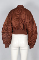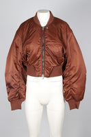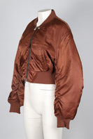 AGOLDE + SHOREDITCH SKI CLUB BROWN SATIN BOMBER JACKET XSMALL