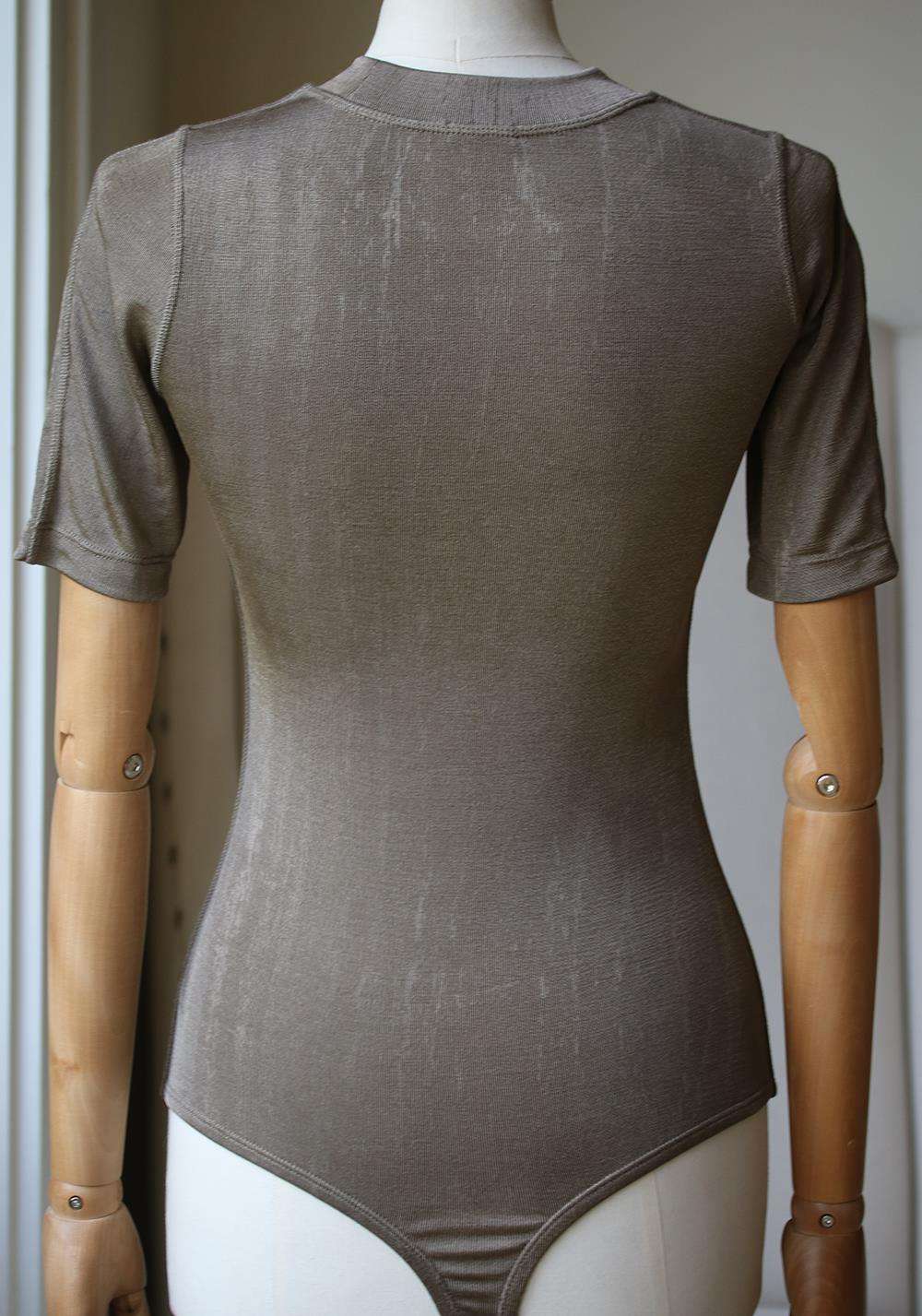 Alix's army-green 'Ridge' bodysuit is made from shimmering metallic stretch-jersey that hugs and enhances curves. Meant to look like a simple top, it has a comfortable thong base that goes virtually undetected under slip-style skirts. Army-green stretch-jersey. Snap fastenings at base. Fabric1: 92% polyamide, 8% elastane; fabric2: 78% polyamide, 22% elastane. Designer color: Moss.