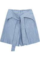 3.1 PHILLIP LIM TIE FRONT COTTON CHAMBRAY SHORTS US 2 UK 6