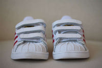 ADIDAS ORIGINALS SUPERSTAR KIDS WHITE & PINK VELCRO TRAINERS EU 25 UK 7.5K US 8K