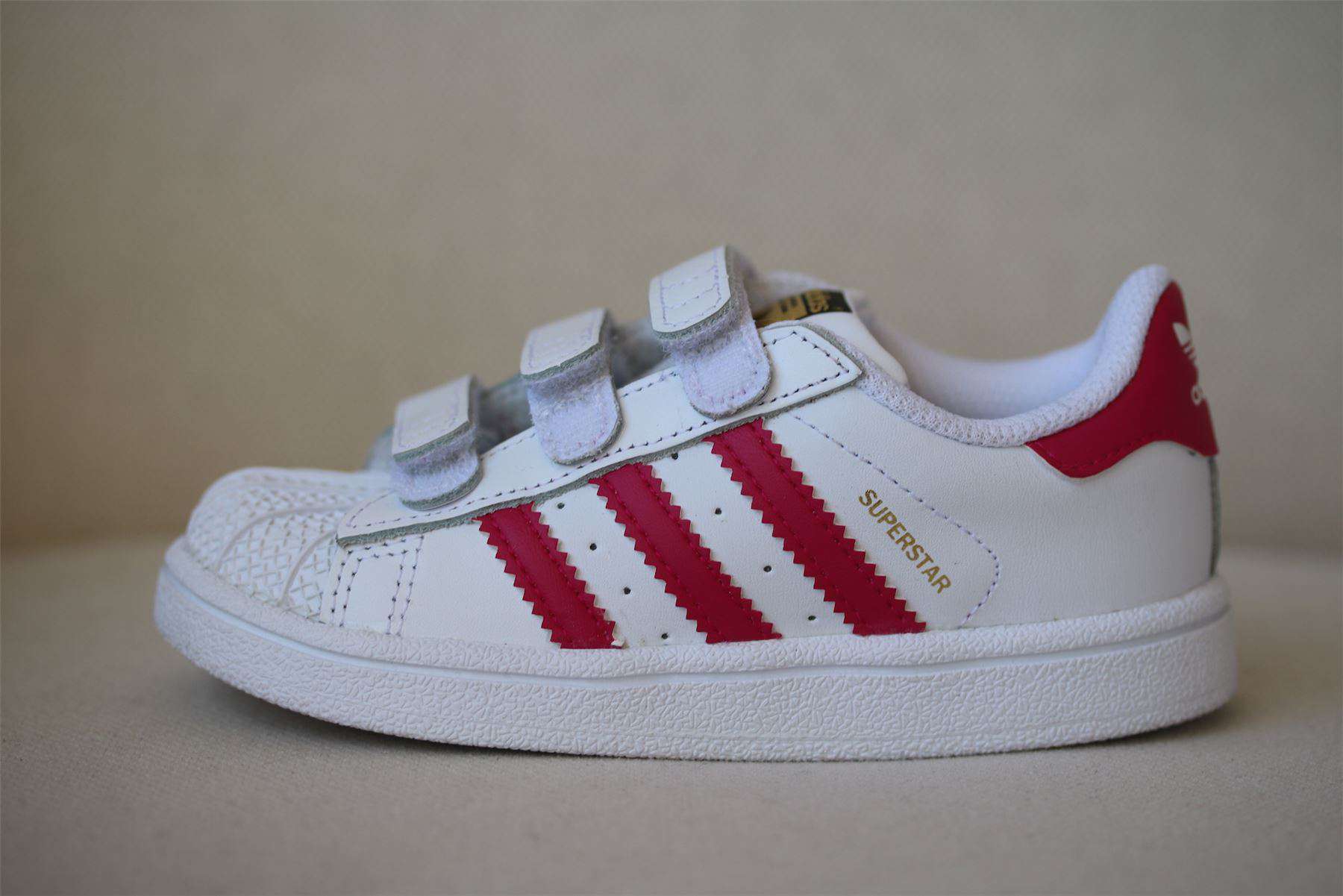 The iconic adidas Superstar sneaker is a perfect fit for all ages. These kids' shoes feature the classic rubber shell toe, while adding comfort closure straps for easy on and off. They also include an EVA midsole for lightweight cushioning and an OrthoLite sockliner for added comfort.