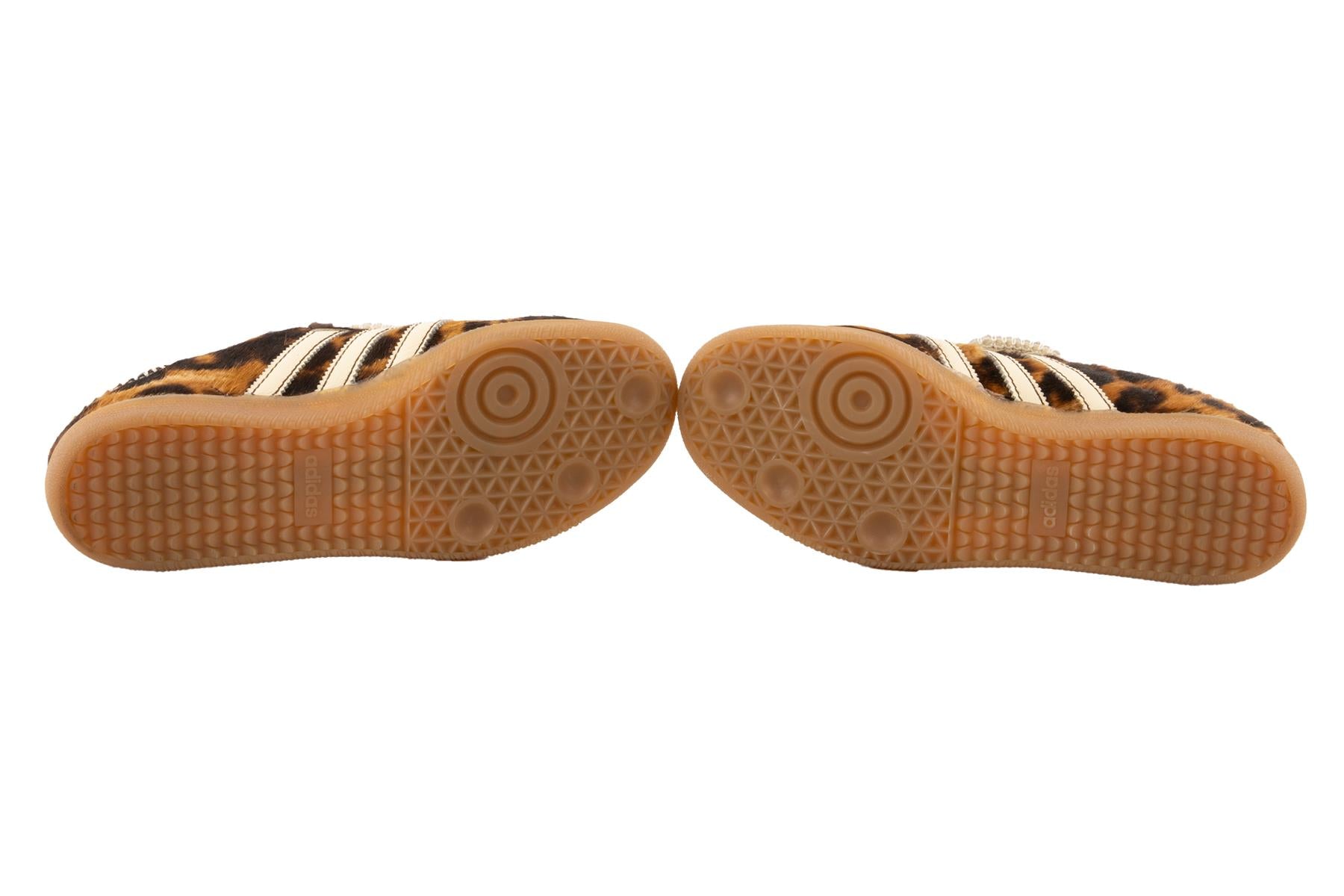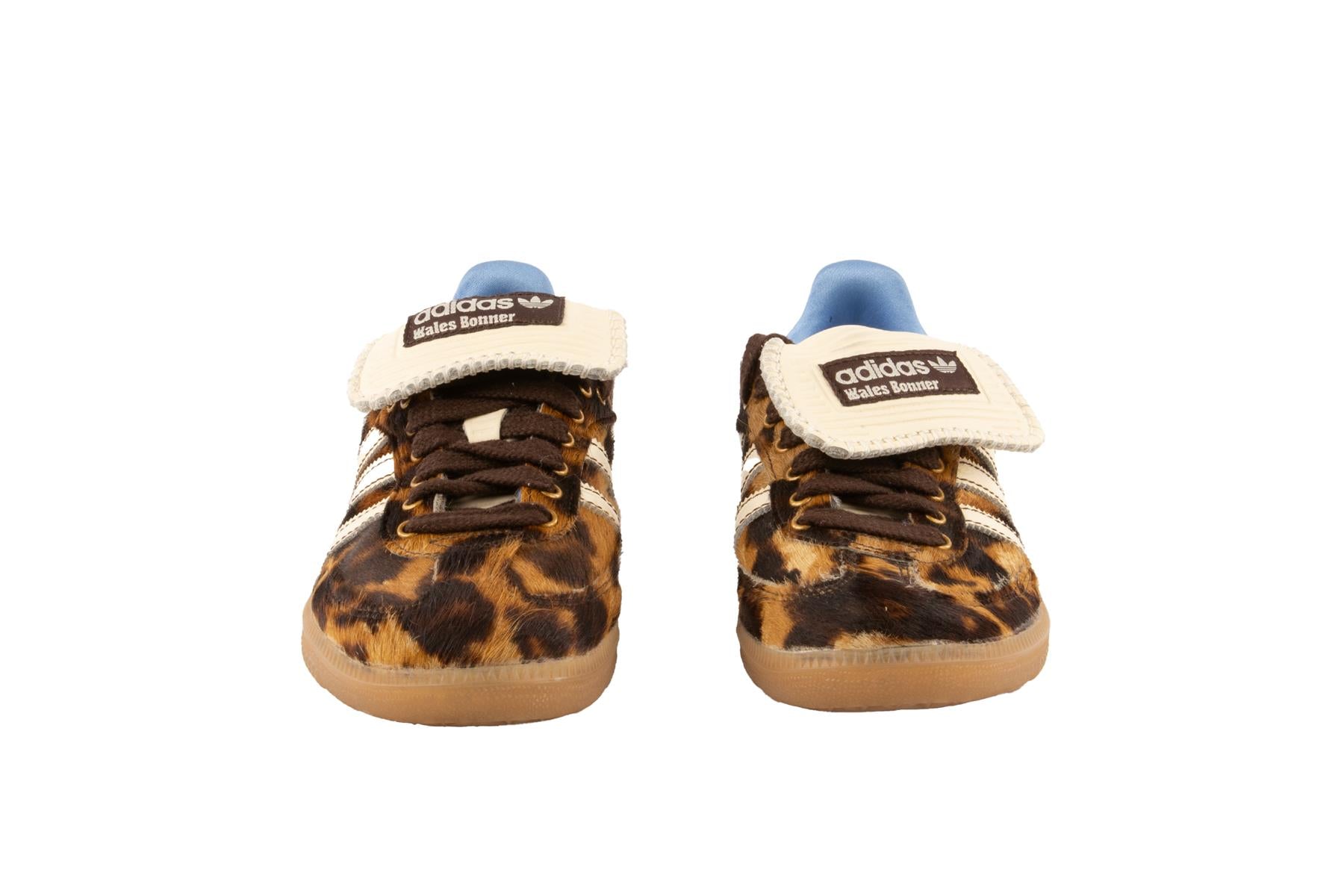 Adidas + Wales Bonner Brown Samba Leopard Sneakers. Brown. Tie fastening - Front. Does not come with - dustbag or box. EU 40 (UK 7, US 10). Insole: 10 in. Heel Height: 1 in.