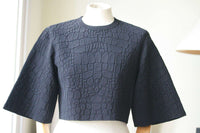 Alexander McQueen's black croc-embossed jacquard top is a charming feminine piece. This cropped design has flared bell sleeves and slips on with ease thanks to its natural give. Style yours with high waisted pants or a slim-fitting skirt.