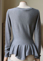 ALEXANDER MCQUEEN GREY MERINO WOOL PEPLUM SWEATER MEDIUM