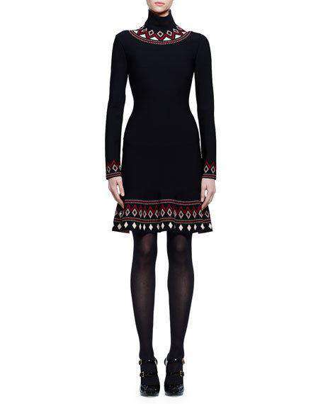 Alexander McQueen Dress. Turtleneck. Long sleeves. Fit-and-flare silhouette. Straight hem. Pullover style. Viscose/polyester/nylon/spandex. Size: Medium (FR 38, UK 10, US 6, IT 42) RRP: £1,500 Ref: RSW1