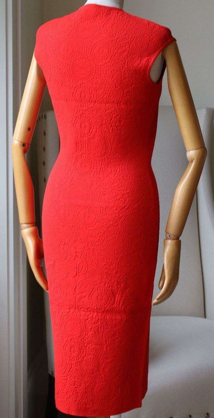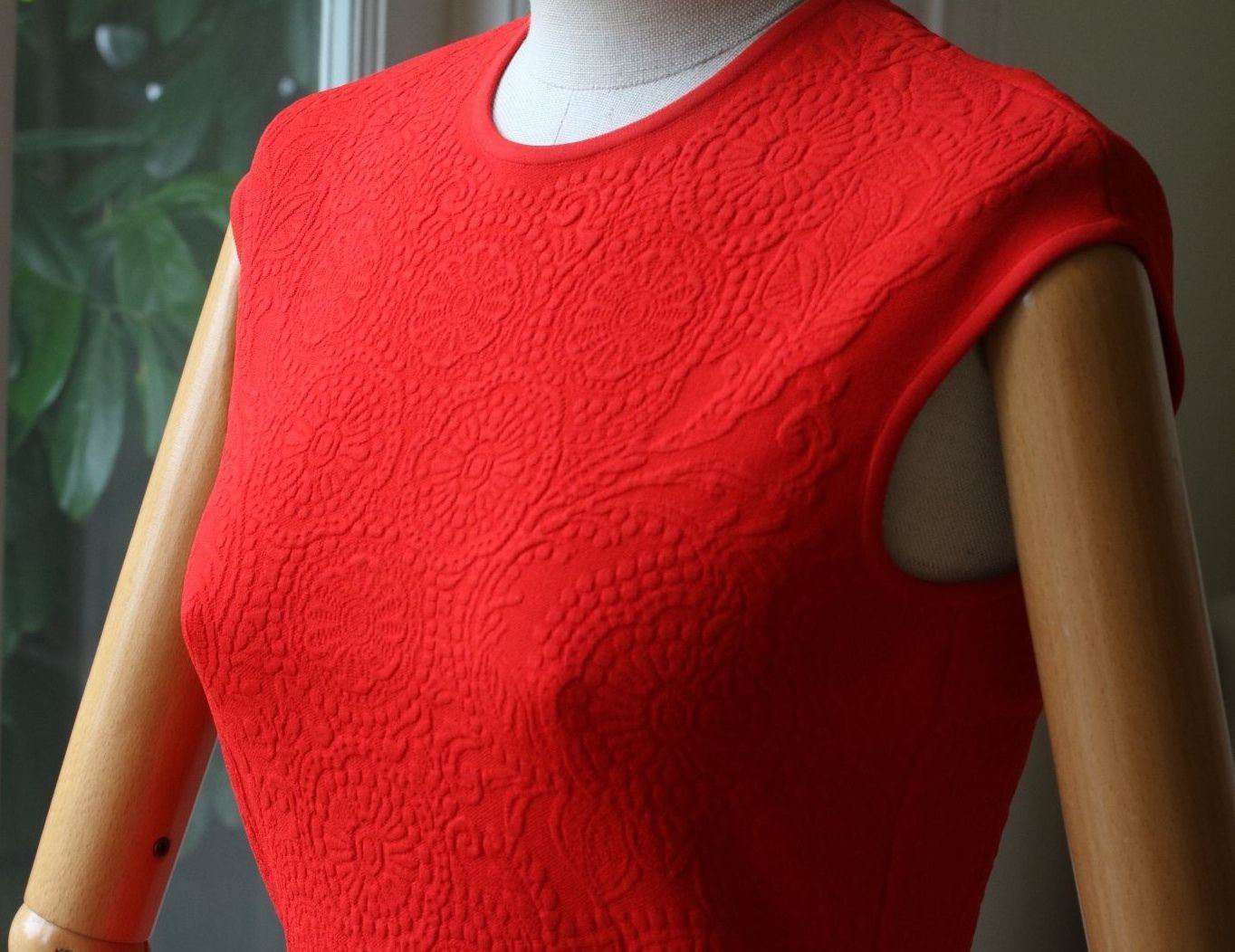 Contour your curves with this beautiful red dress from Alexander McQueen. Featuring a jacquard-texture knit with a small round neck and capped sleeves.