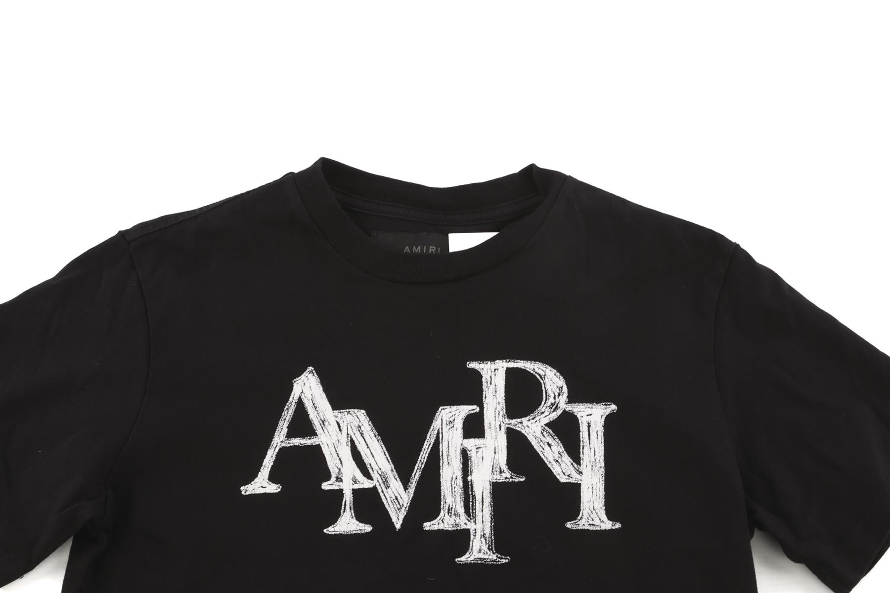 Amiri Black Kids Boys T-Shirt. Black and white. Short Sleeve. Crewneck. Pull on. 100% Cotton. 12 Years.