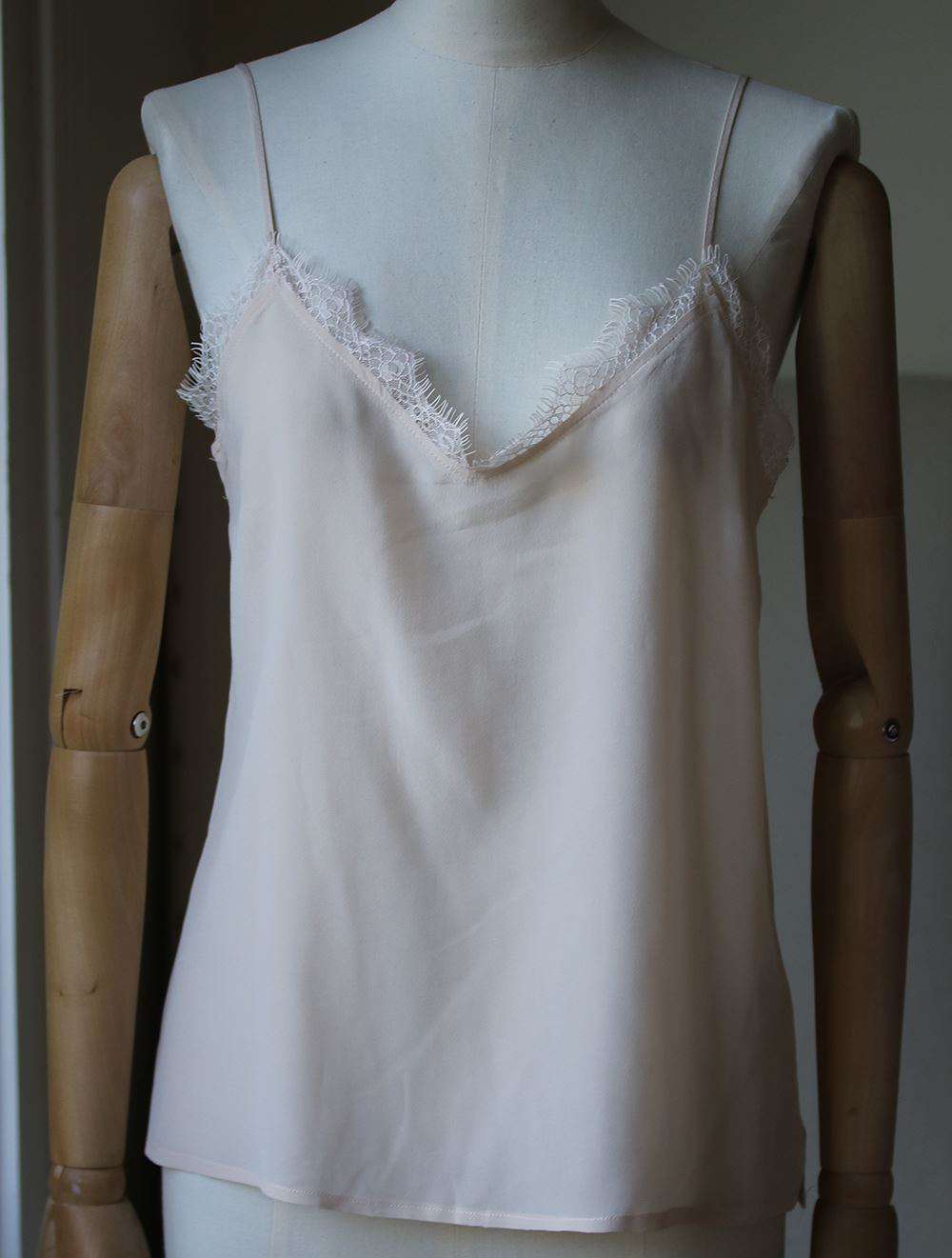 ANINE BING LACE-TRIMMED SILK CAMISOLE SMALL
