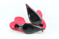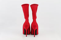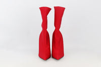• Made from red stretch-jersey with sharp pointed toes and slim heel.