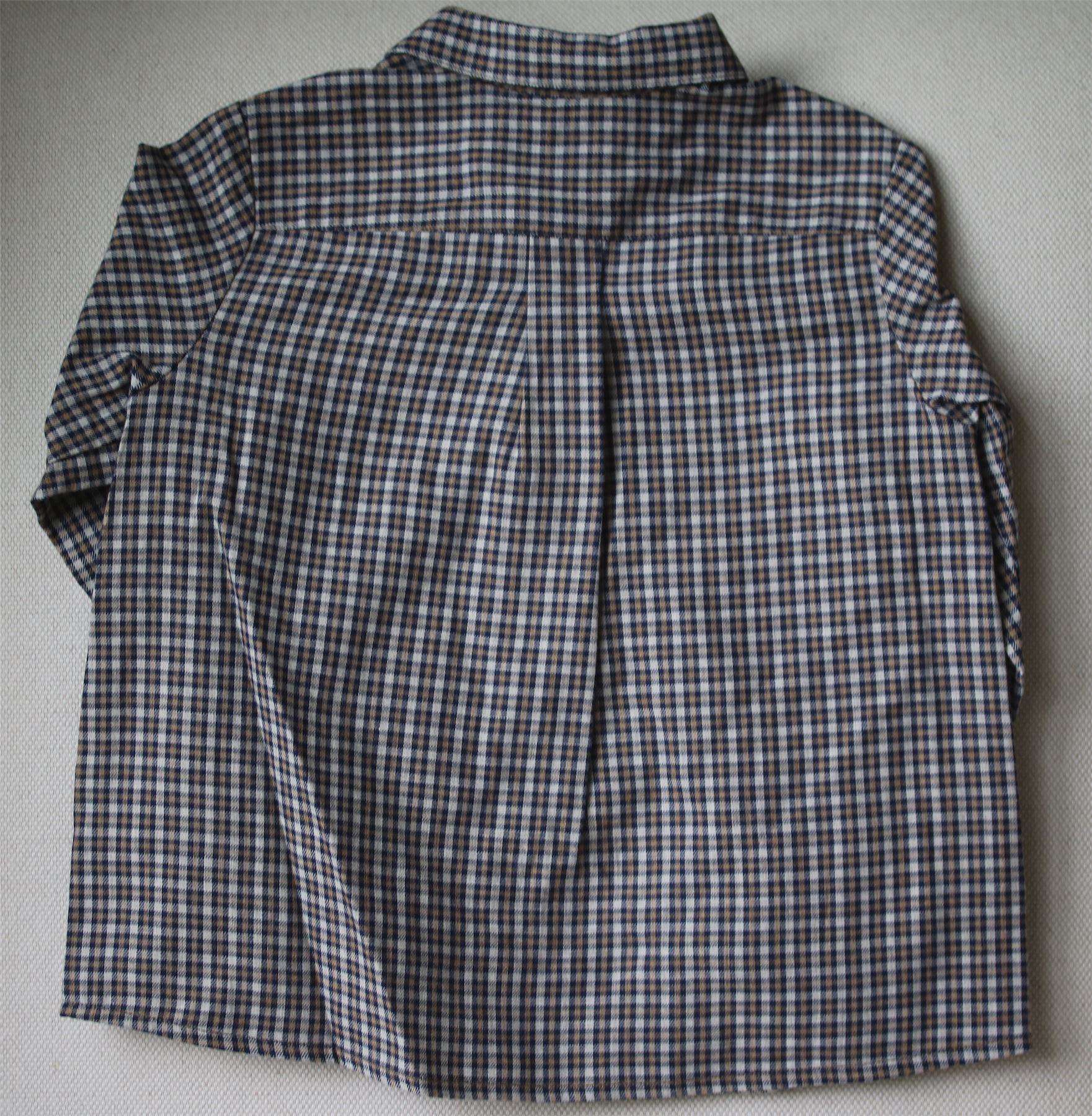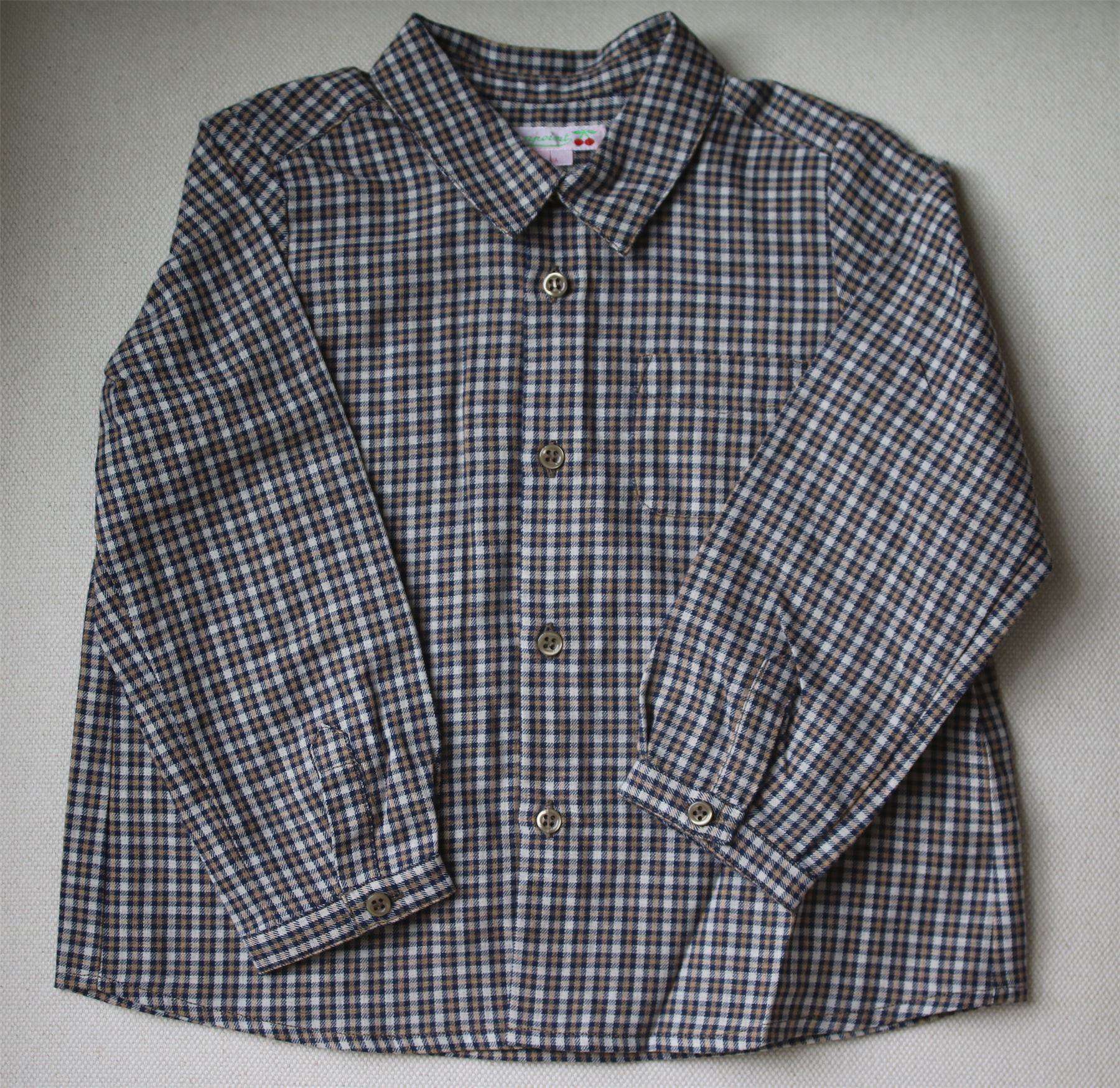 Blue, grey & beige check shirt by Bonpoint with button fastening down the front and on the cuffs.