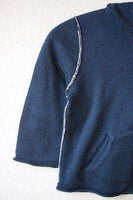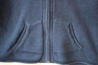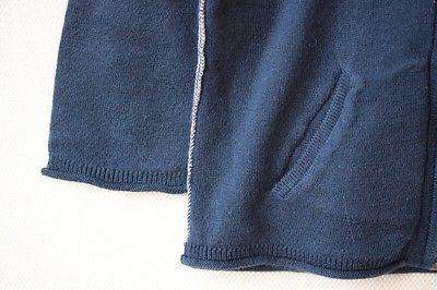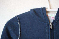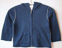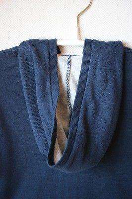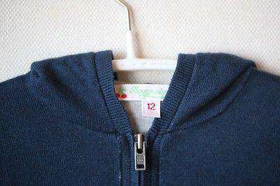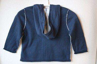Super soft navy zip up hooded cardigan double lined in contrasting grey cotton.