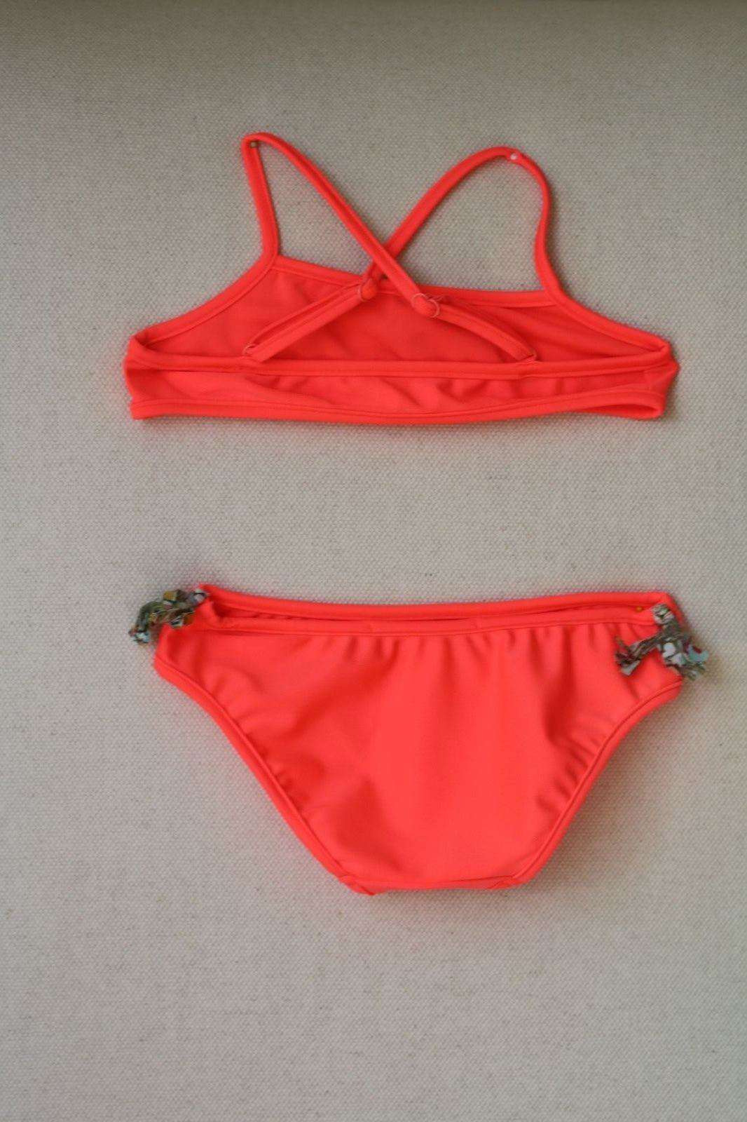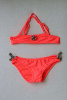 Bonpoint bikini. Girls’ neon coral bikini with Liberty print tassels and adjustable straps. Summer 2O17 Girls’ Collection. 20 % Elasthane, 80 % Polyamide Size - 4 years RRP £68 Ref: SB11