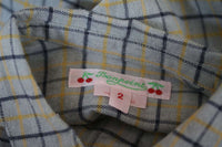 Grey, yellow and navy blue plaid shirt by Bonpoint with button fastening down the front and on the cuffs.