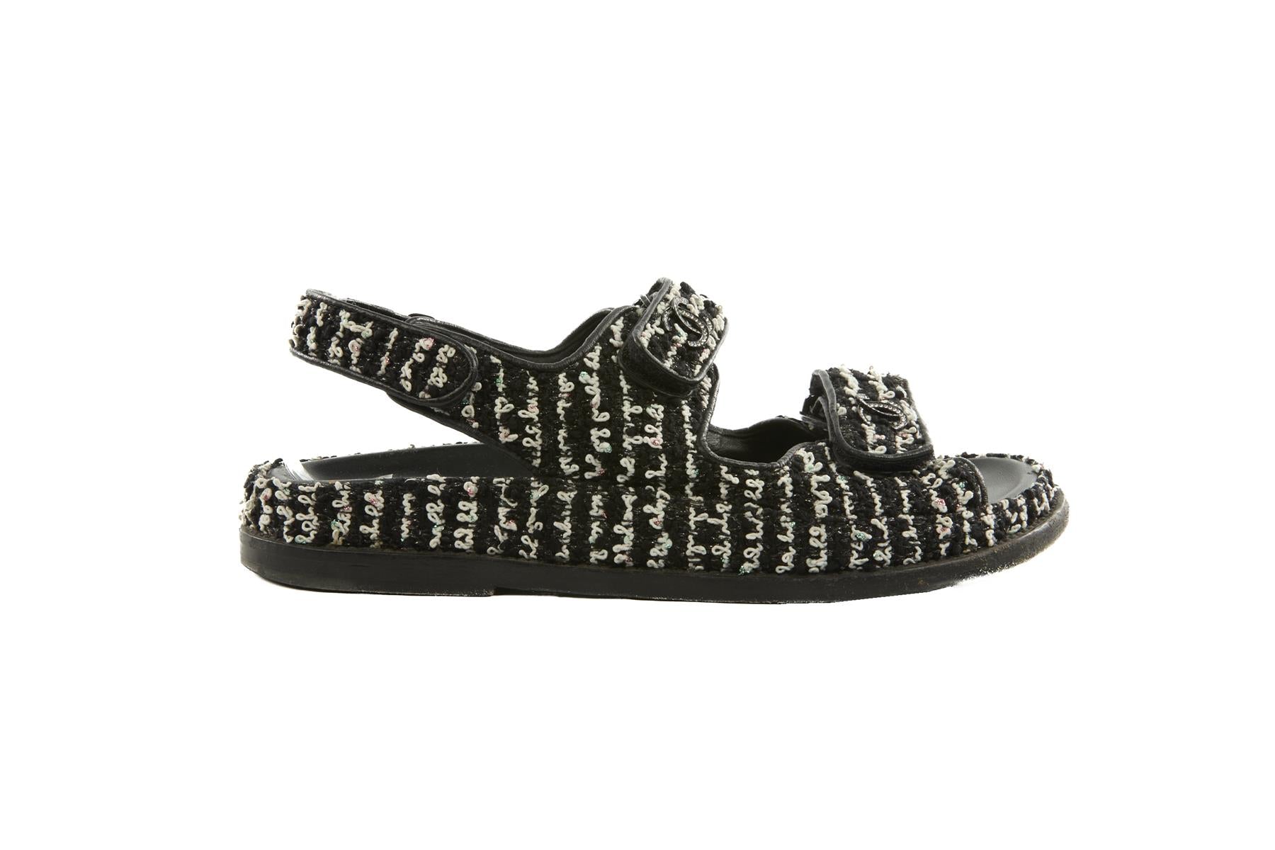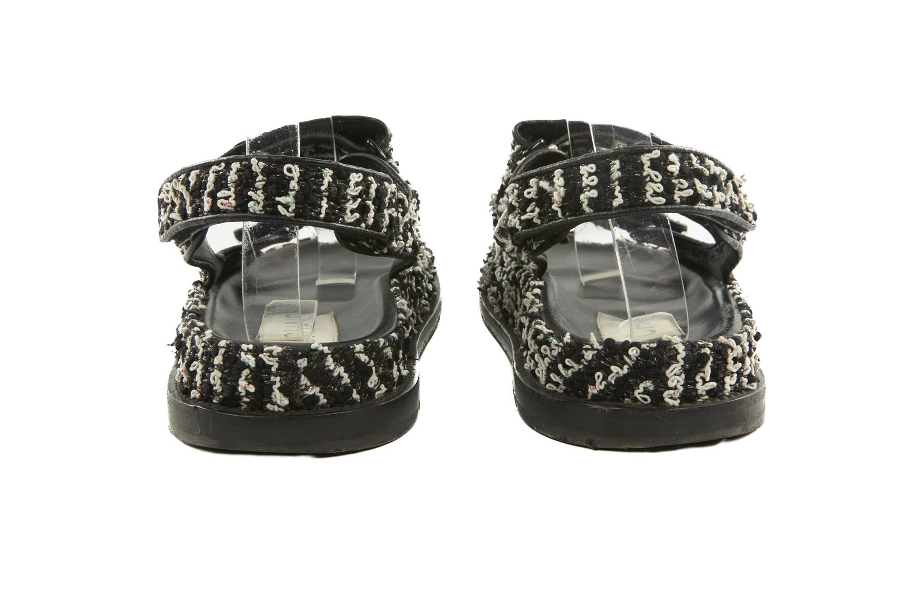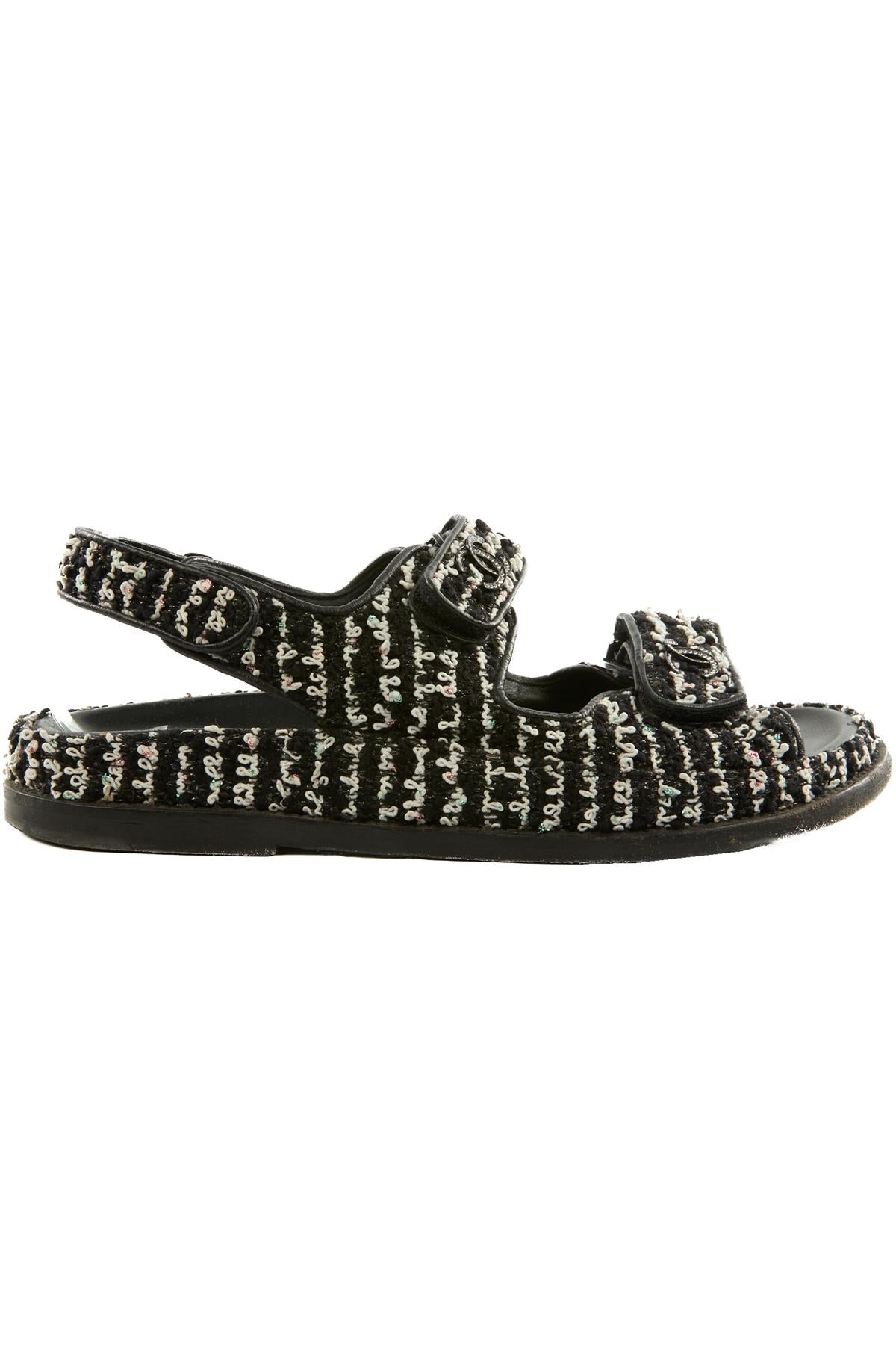 CHANEL BLACK 2022 DAD TWEED SANDALS EU 38.5 UK 5.5 US 8.5
