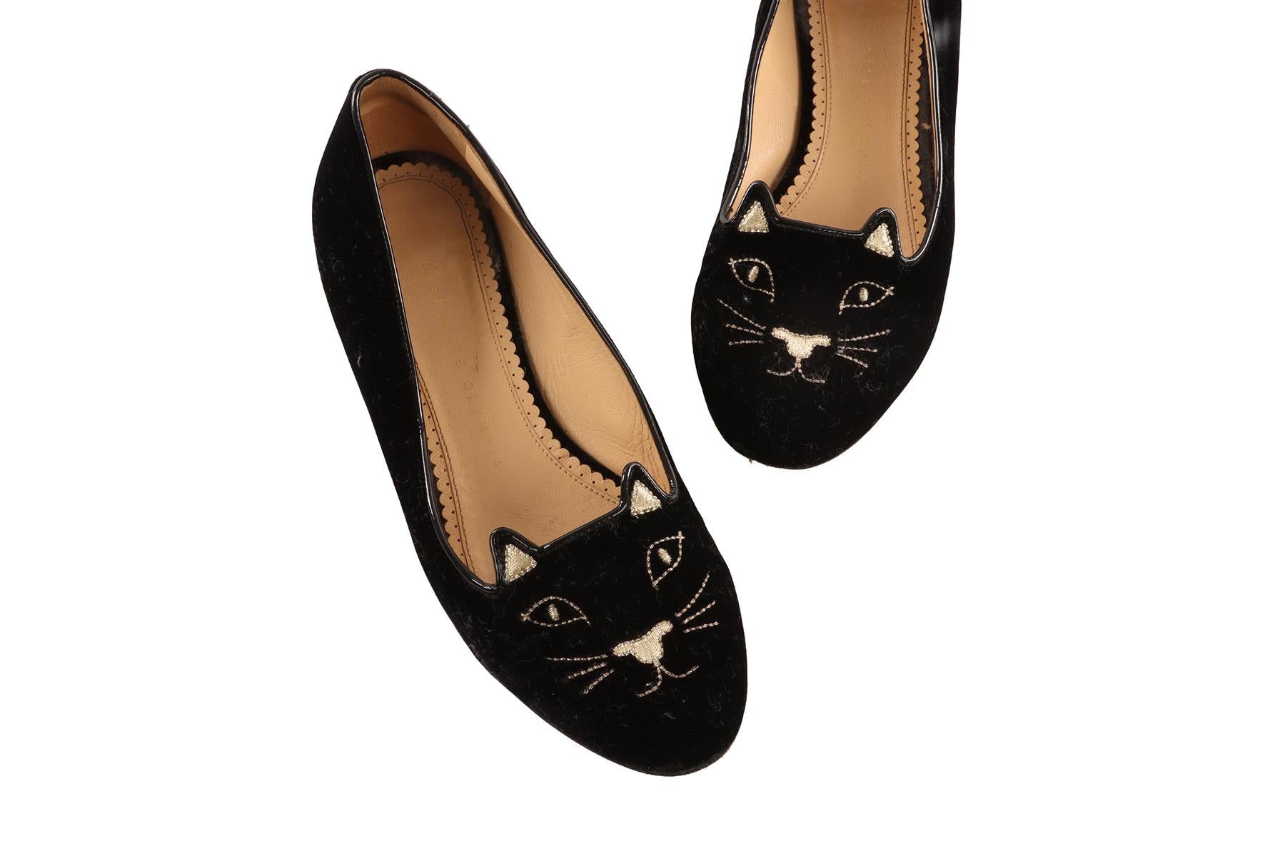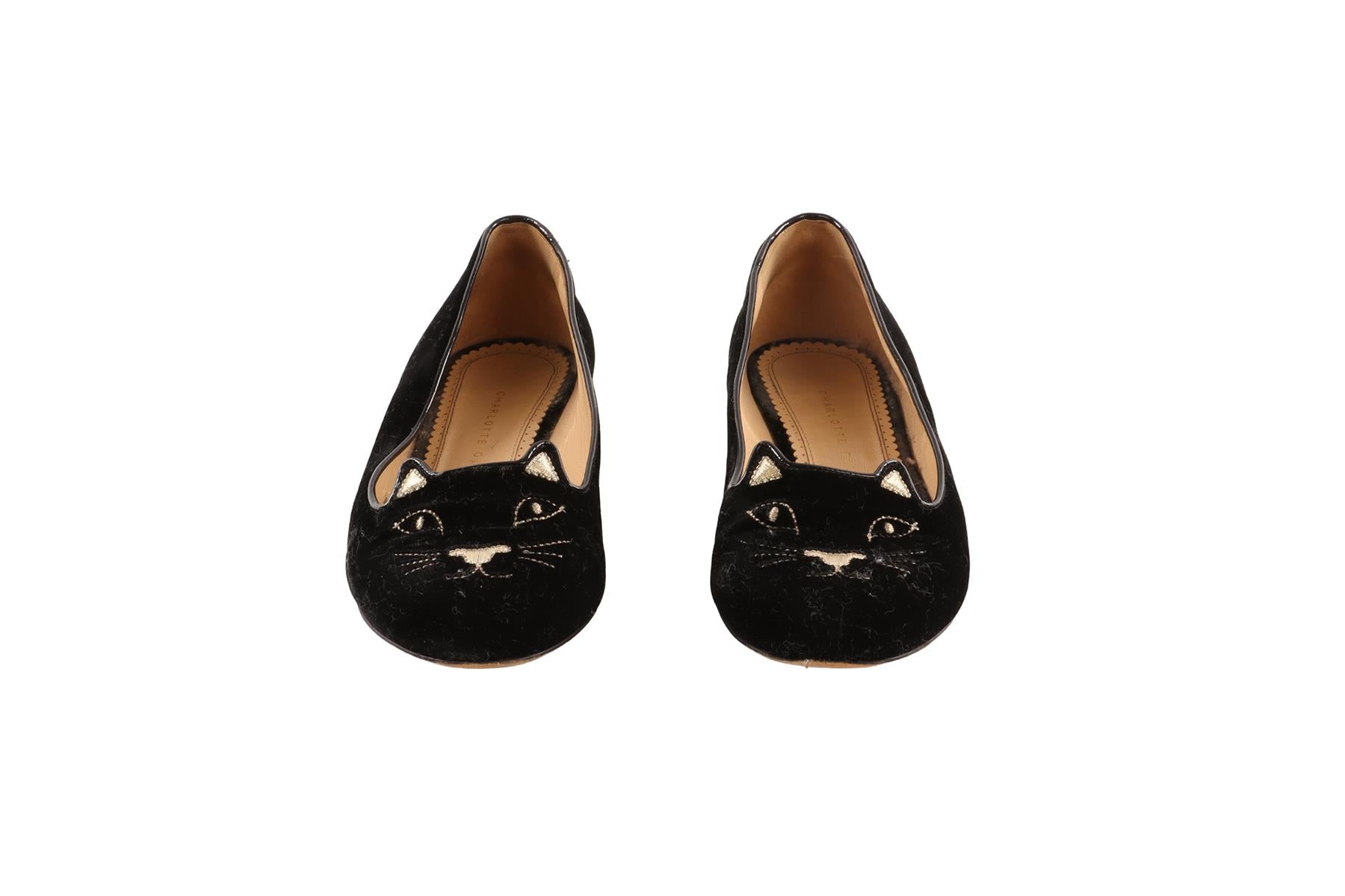 Charlotte Olympia Black Velvet Ballet Flats. Black. Slips on. Comes with - dustbag. EU 37.5 (UK 4.5, US 7.5). Insole: 9.5 in. Heel Height: 0.7 in.