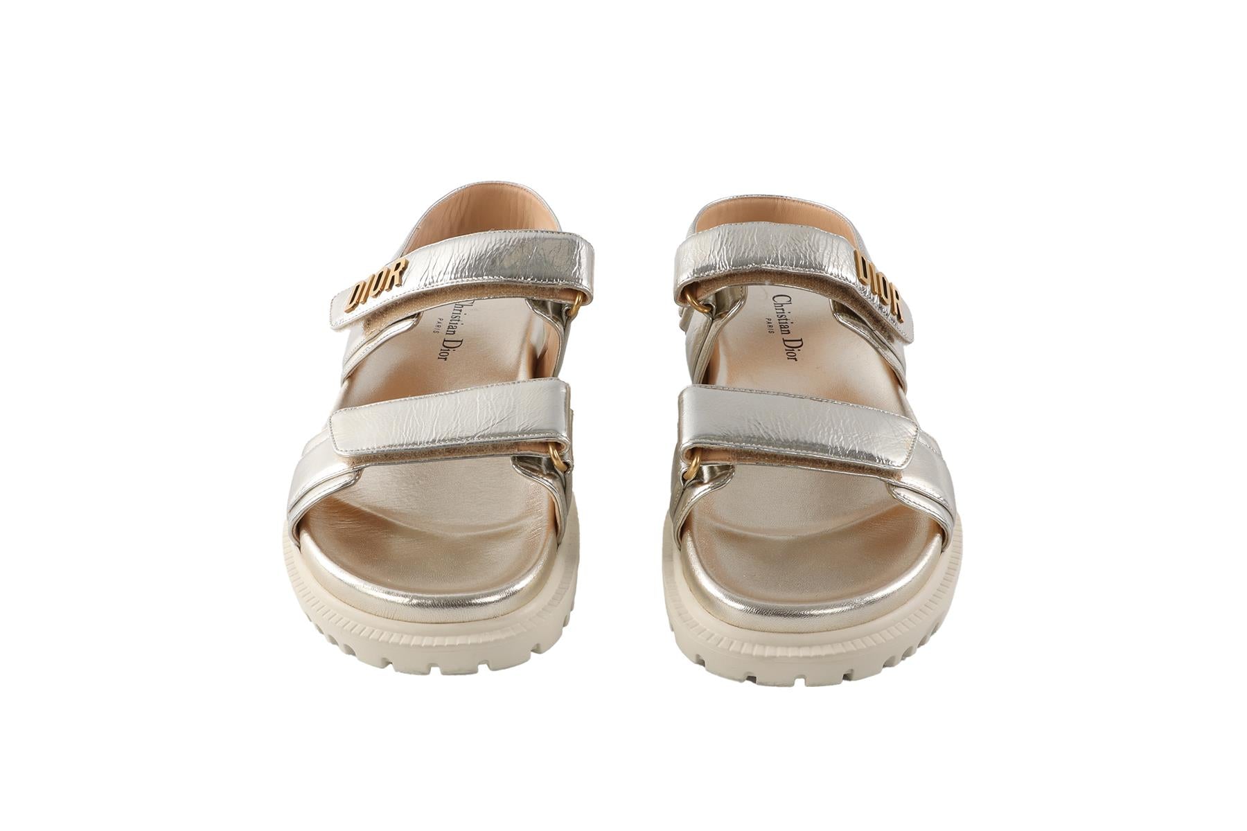 CHRISTIAN DIOR GOLD DIORACT LEATHER SANDALS EU 38 UK 5 US 8