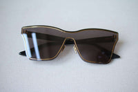 100% cotton. Made in China. Button front closures. Breast flap pockets with button closures. Epaulettes.Pressure fitted 1 mm grooved lens perimeter with metal inlay. Titanium top bar detailing across the brow. Integrated metallic hinge bar detail. Acetate temples. Custom titanium nose pads with diamon pressed detail. 100% UVA and UVB lens with anti-reflective coating. Made in Japan.
