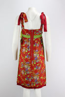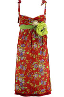 - Made from red, purple, green and yellow cotton with floral print throughout.
