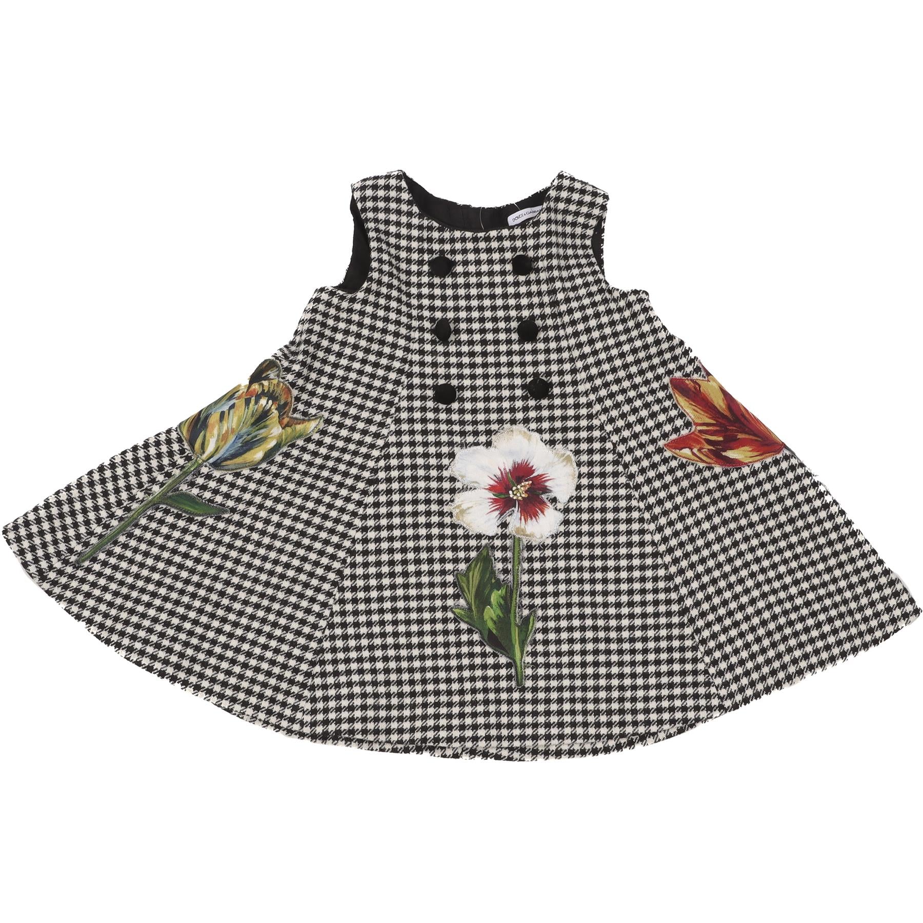 Dolce & Gabbana Black Baby Girls Dress. Black and white. Sleeveless. Crewneck. Zip fastening - Back. 36% Wool, 34% Polyester, 29% Acrylic, 1% Elastane, 100% Viscose, 100% Polyester. 12-18 Months.