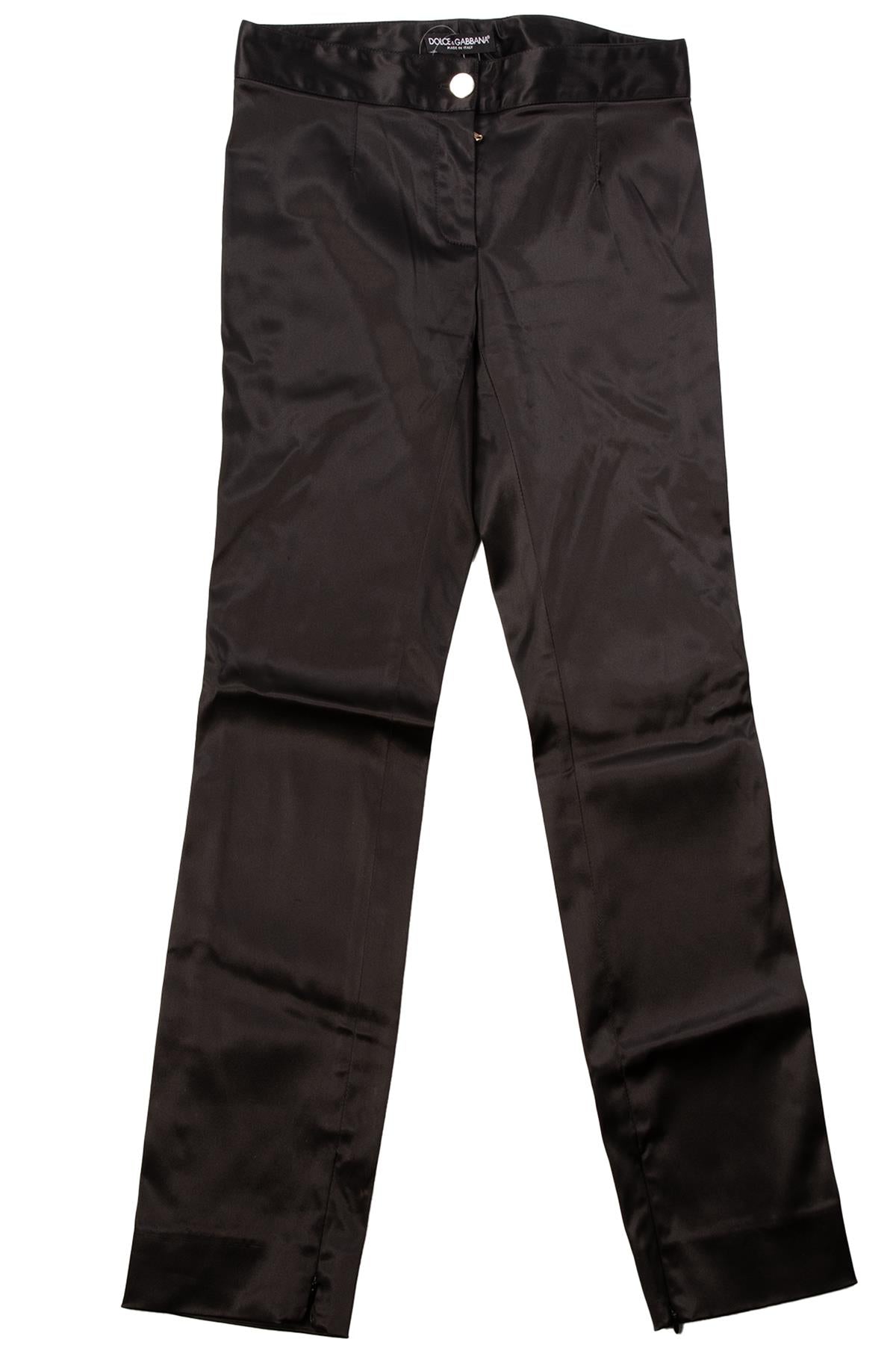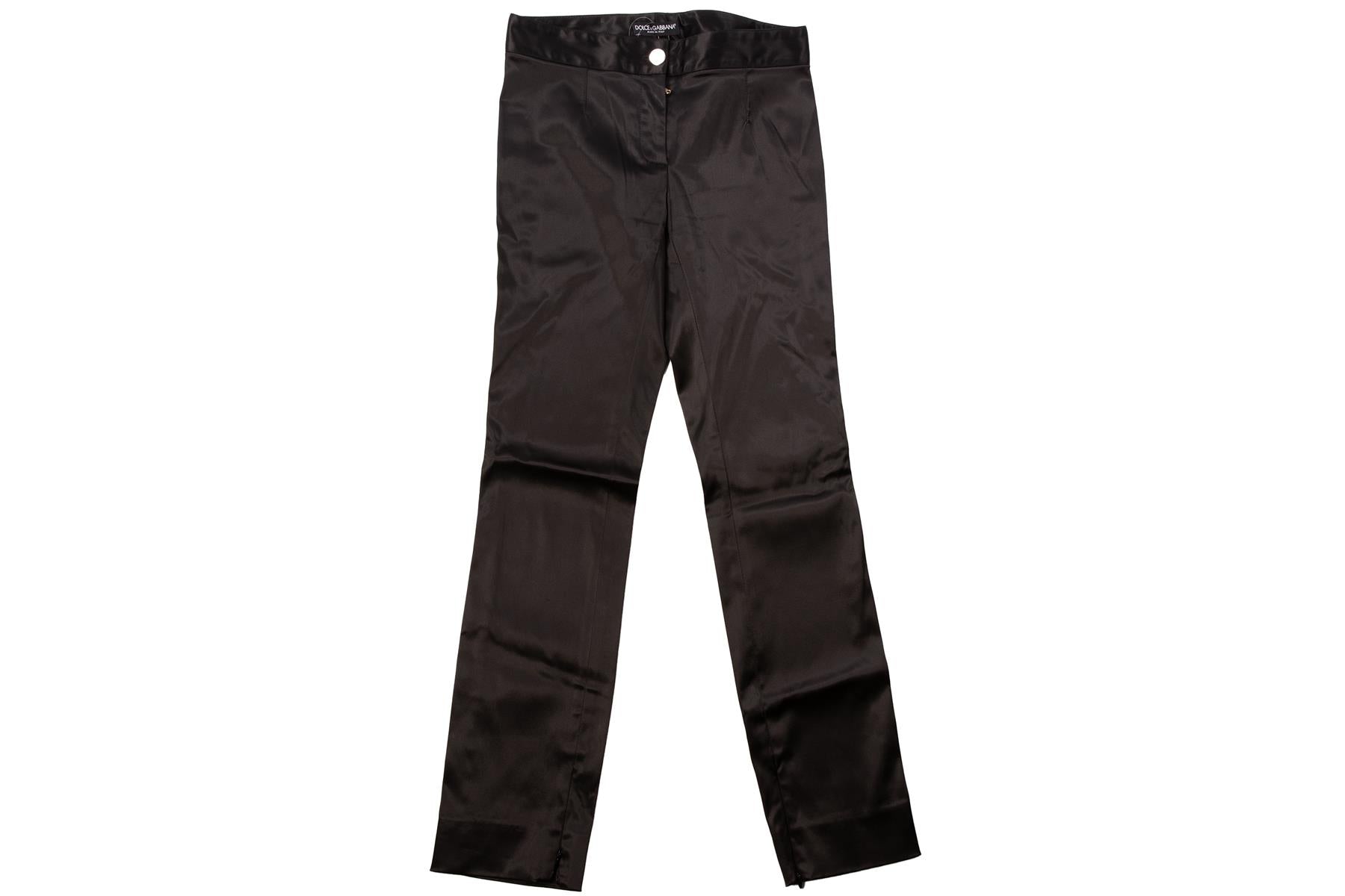• Dolce & Gabbana Black Vintage Satin Straight Leg Pants.