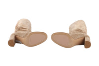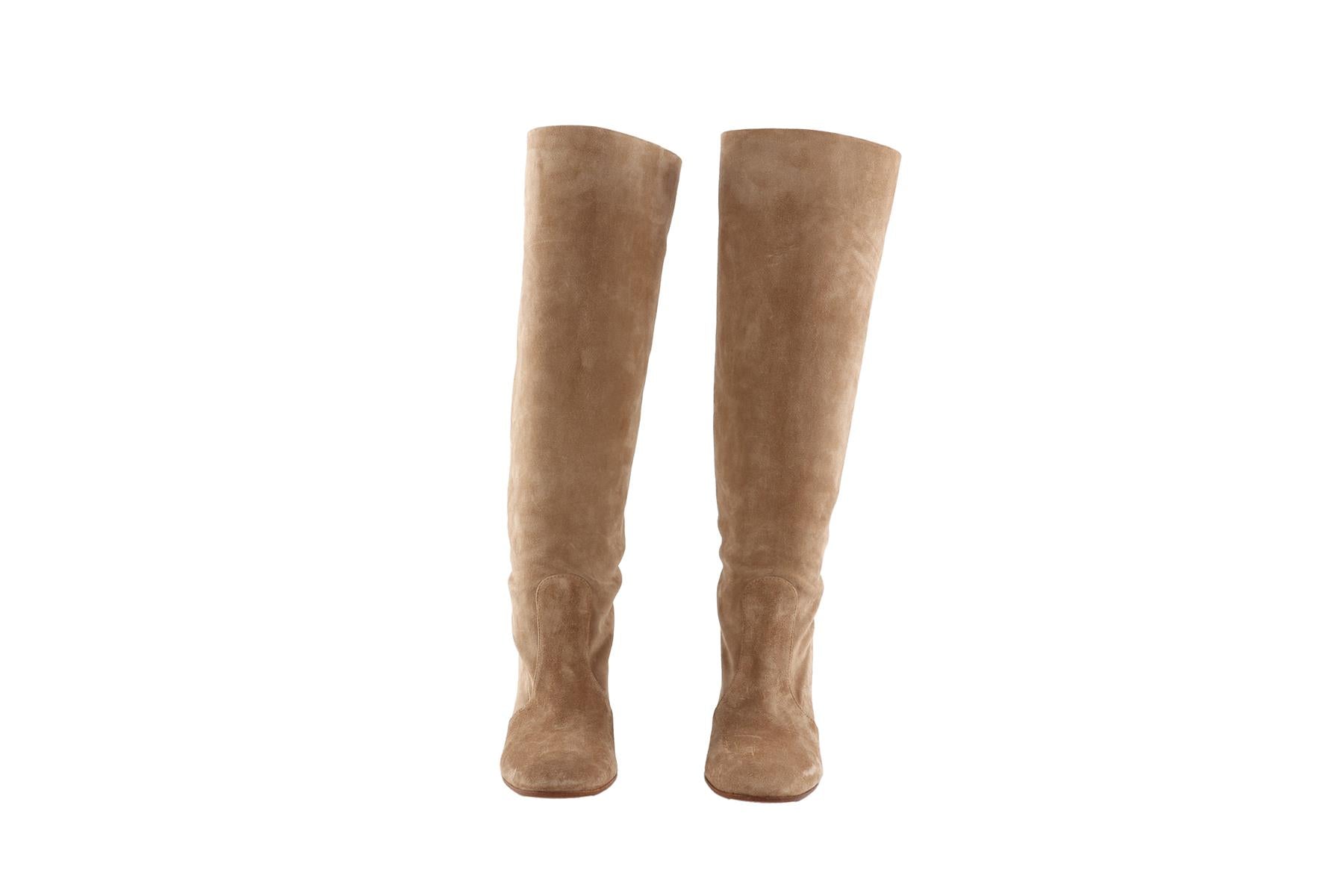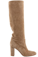 • Gianvito Rossi Beige Suede Knee High Boots.