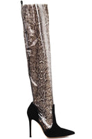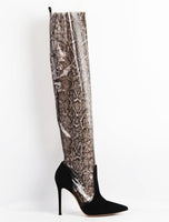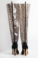 - The knee-high boots by Gianvito Rossi are crafted from snake-print PVC finished with beautifully soft suede tracing the foot and up the back of the legs to add a sultry feel.
