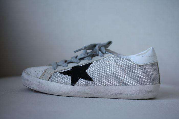 The classic distressed trainers by Golden Goose in mesh with black star appliqués.