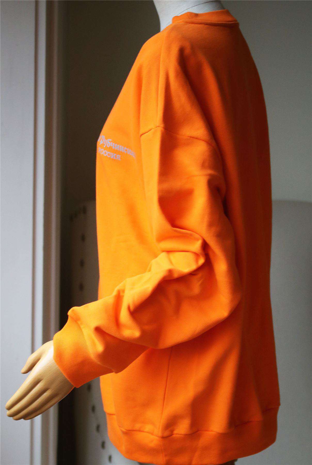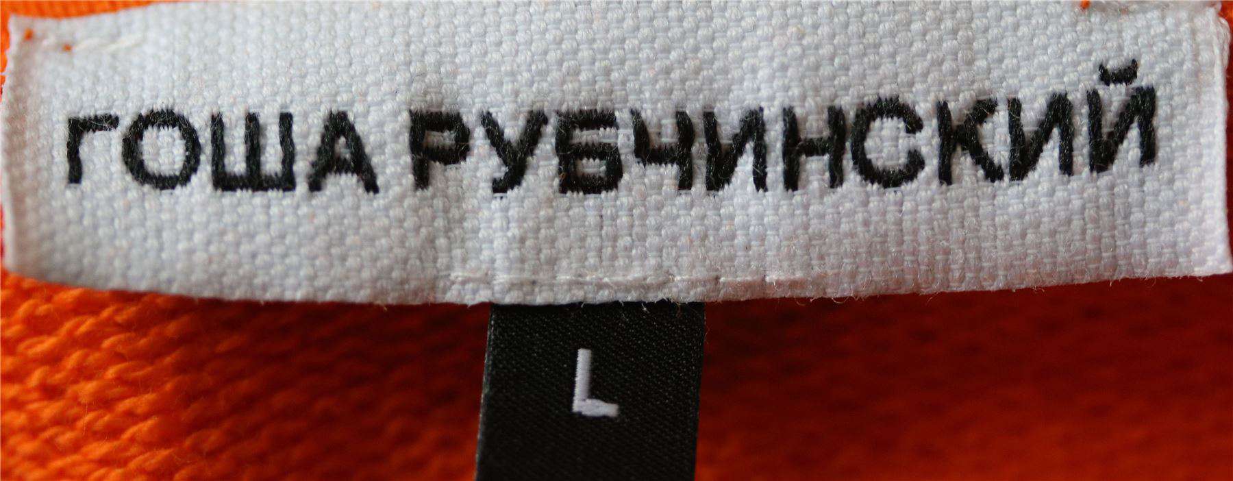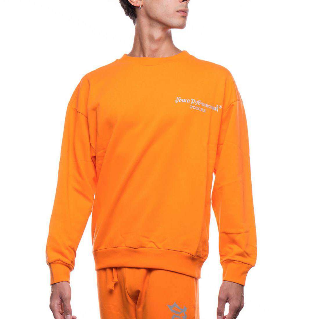 Gosha logo sweatshirt from the F/W2017-18 Gosha Rubchinskiy collection in orange. This sweatshirt from Gosha Rubchinskiy new collection comes in a regular fit. The crew neck sweatshirt, here in orange, is made of cotton and features Gosha Rubchinskiy reflective logo at front. Crewneck. Reflective logo. 100% Cotton.