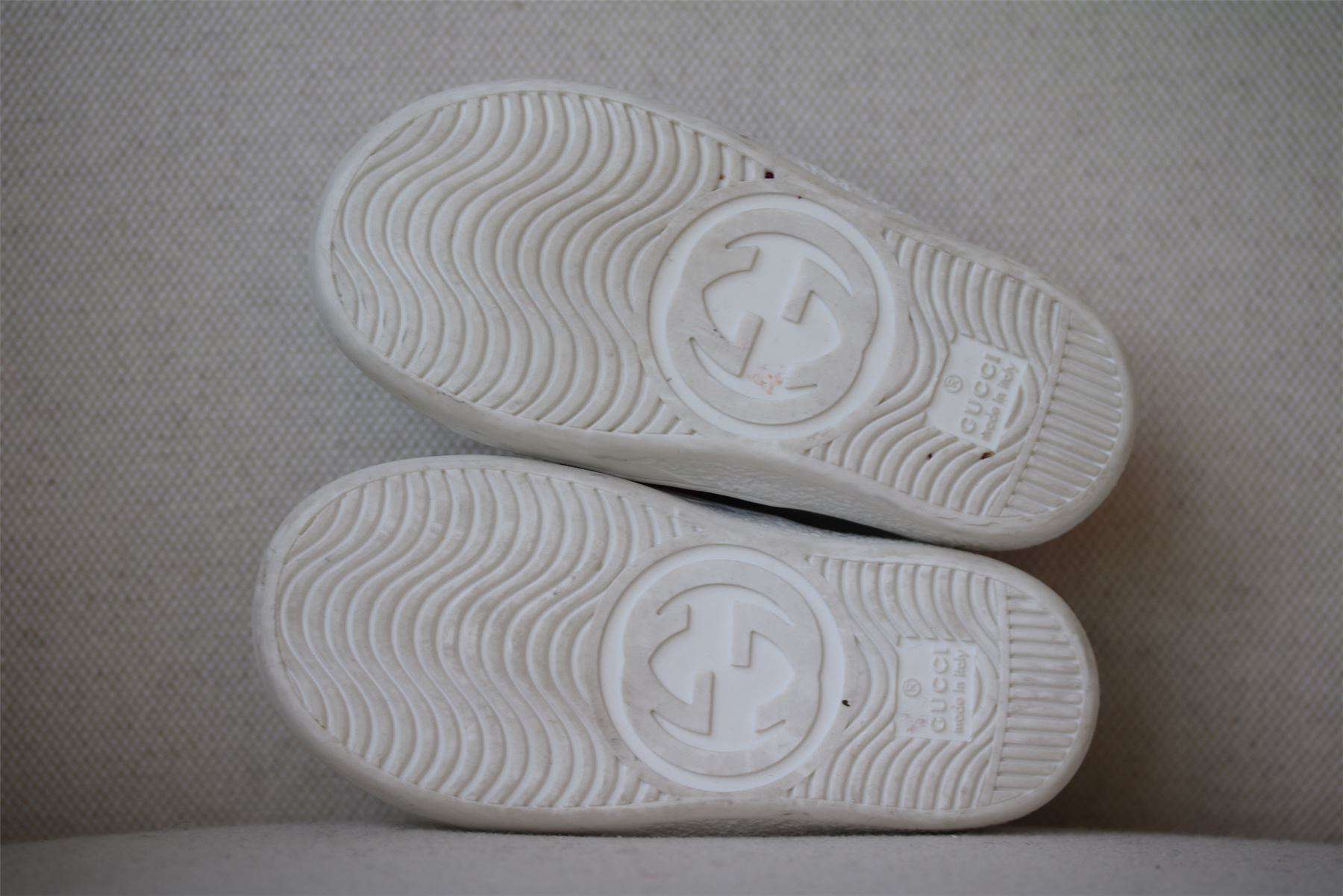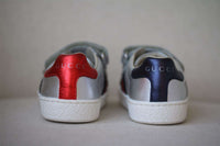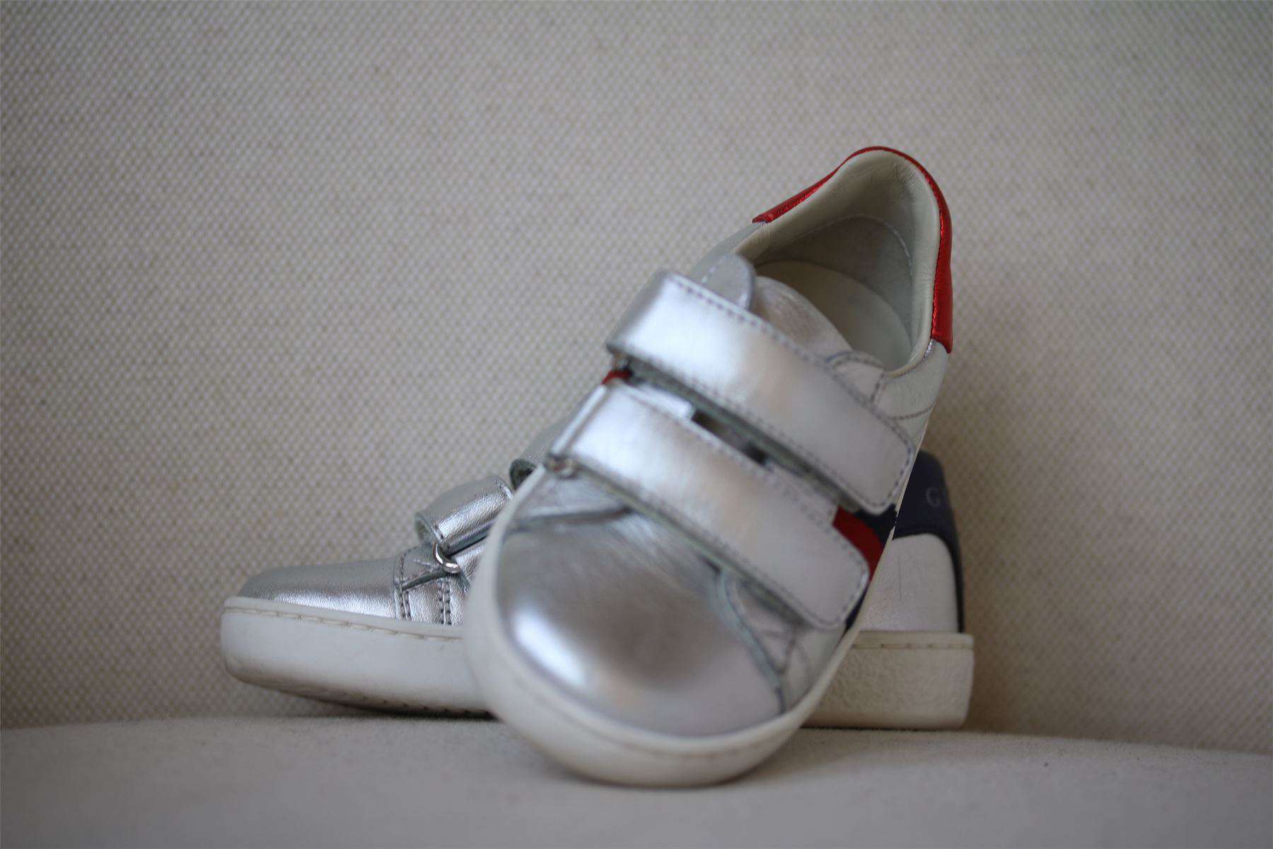 GUCCI BABY SILVER WEB LEATHER TRAINERS EU 22 UK 5