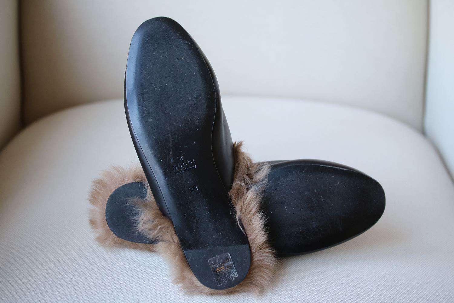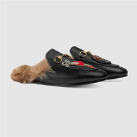GUCCI PRINCETOWN APPLIQUÉD EMBELLISHED LEATHER SLIPPERS EU 38 UK 5 US 8