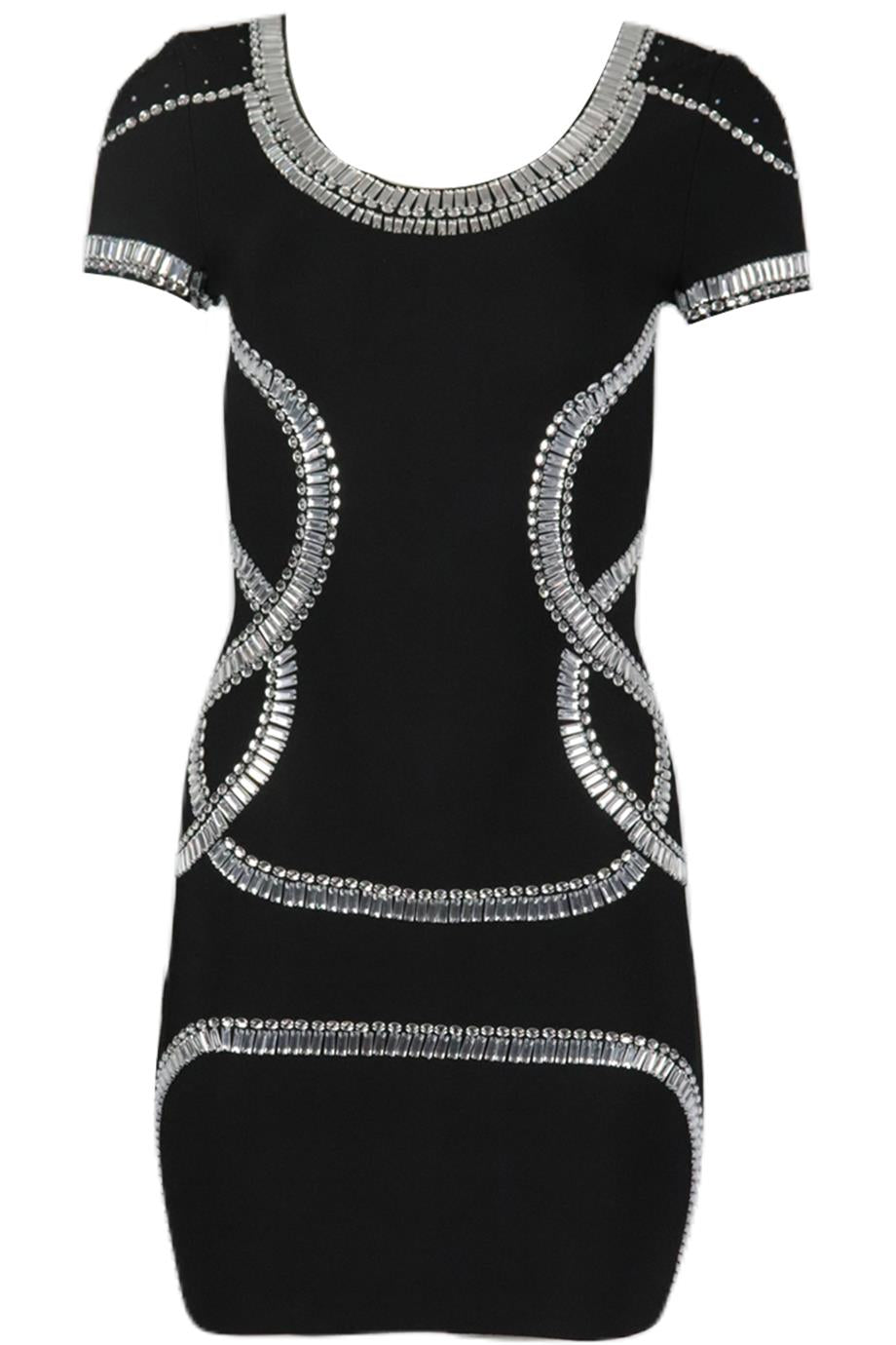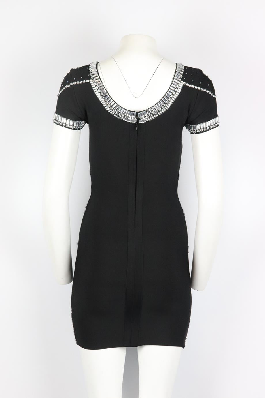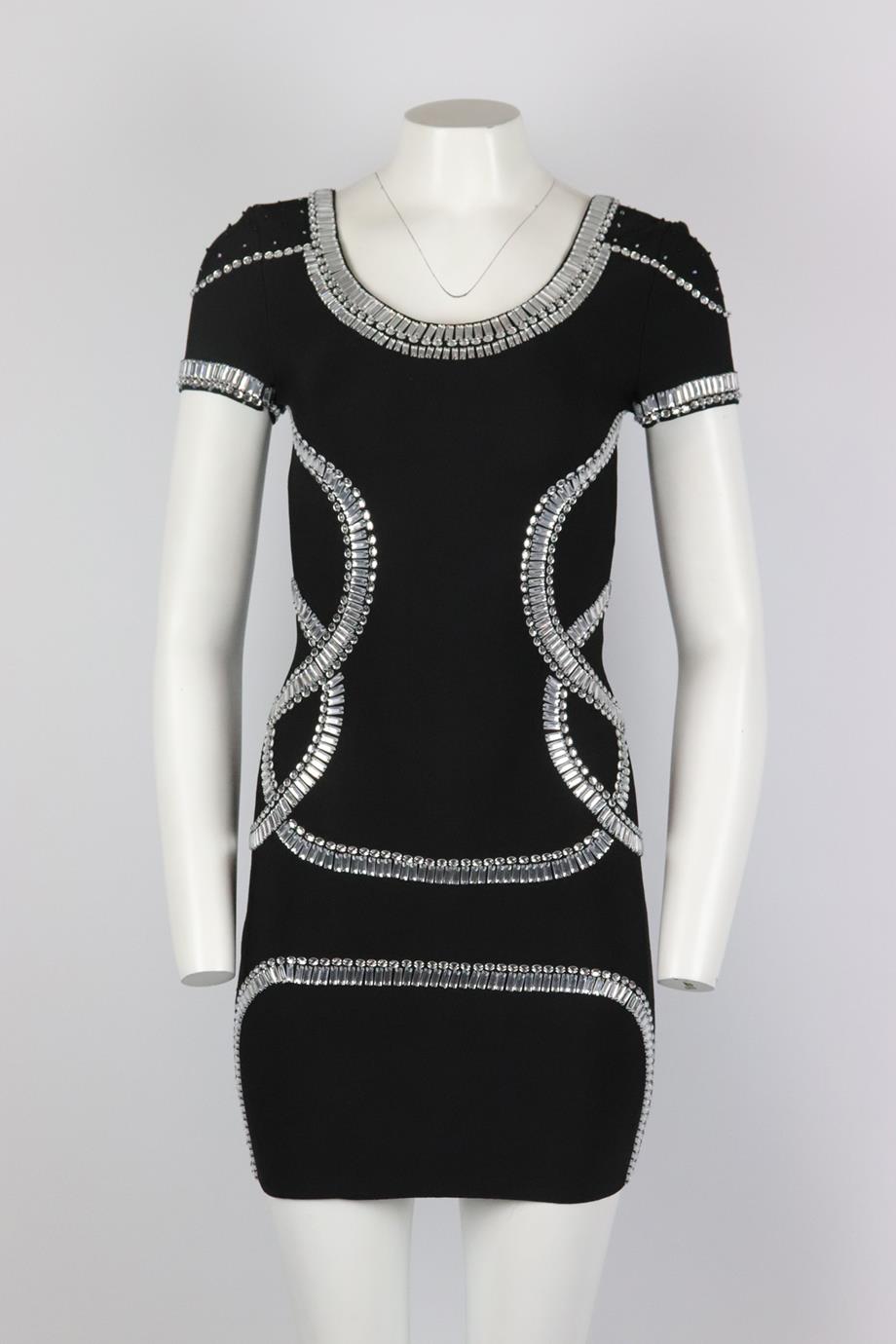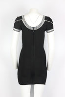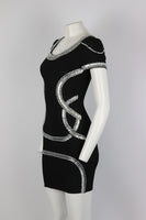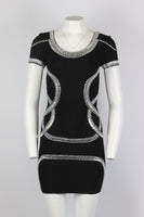 HERVE LEGER EMBELLISHED STRETCH KNIT MINI DRESS SMALL