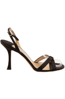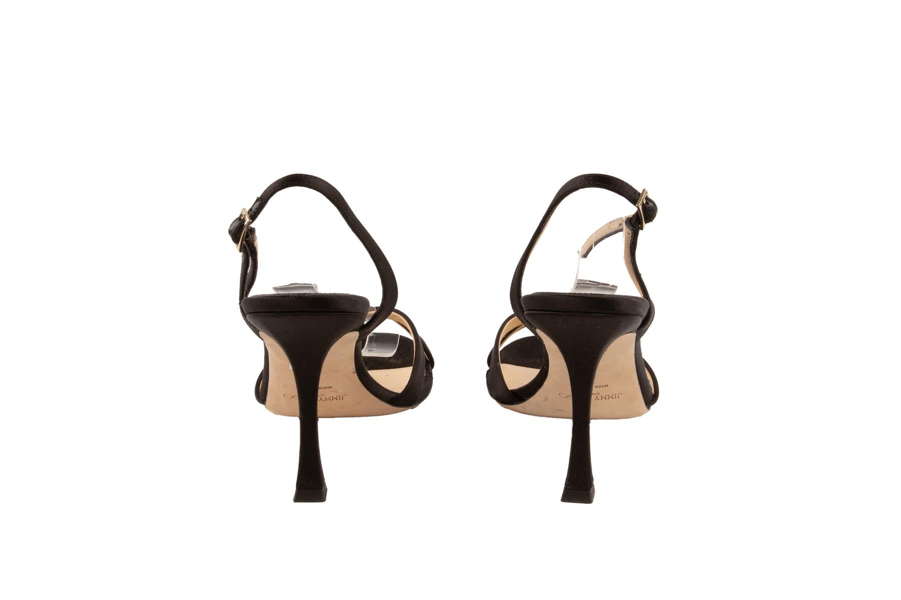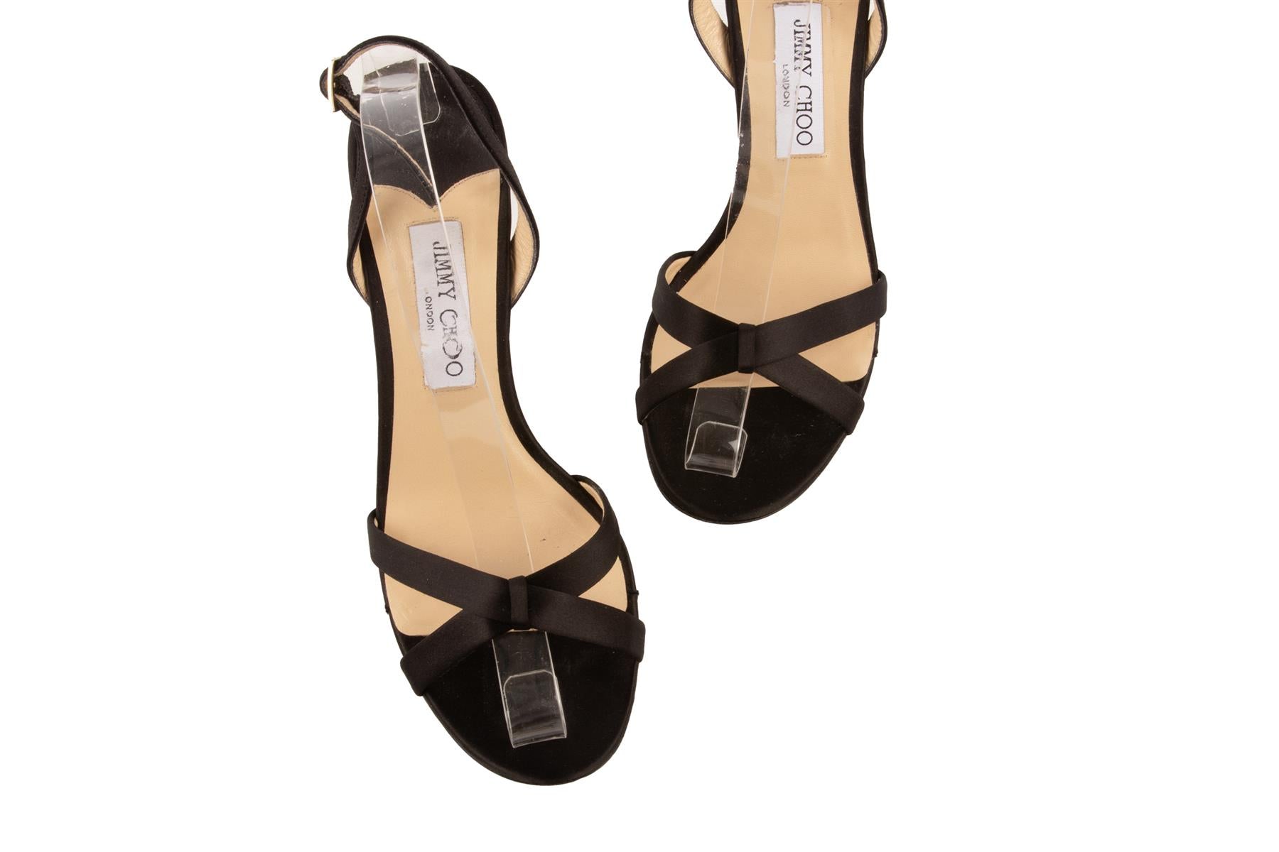 • Jimmy Choo Black Satin Sandals.