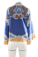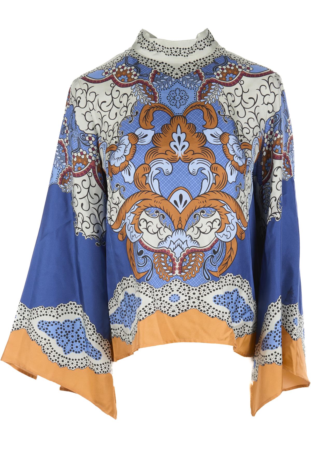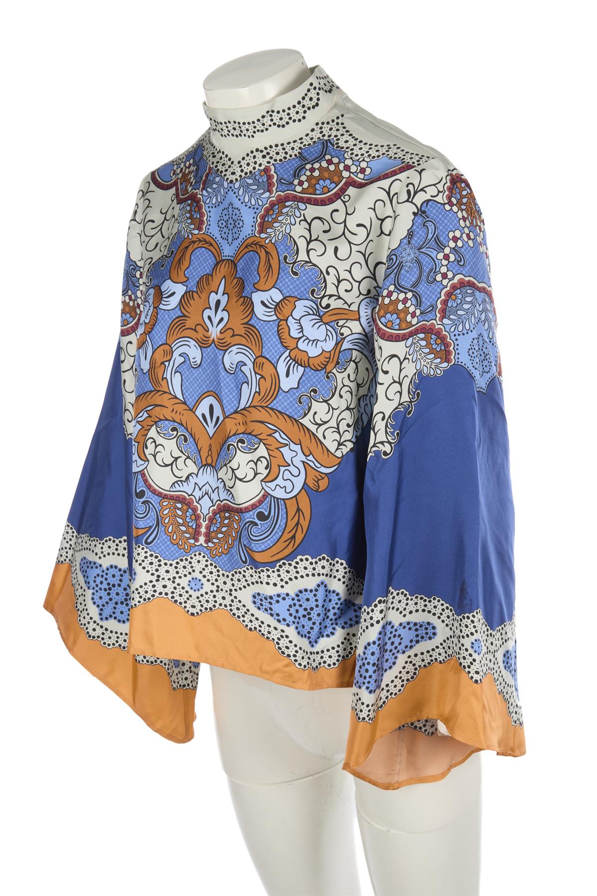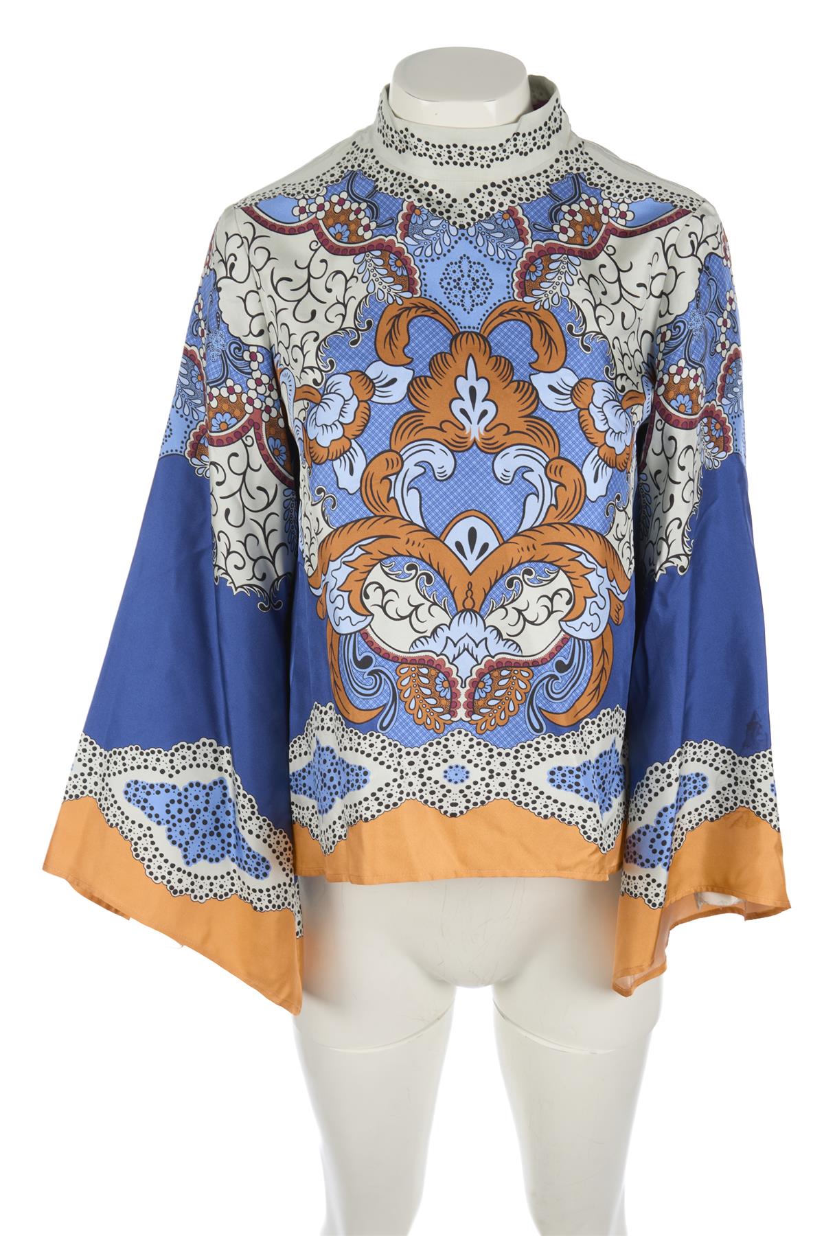 La Double J Blue Silk Top. Multicoloured. Long Sleeve. Mock Neck. Zip fastening - Back. 100% Silk. Small (UK 8, US 4, FR 36, IT 40). Bust: 37 in. Waist: 38 in. Hips: 42 in. Length: 24 in.