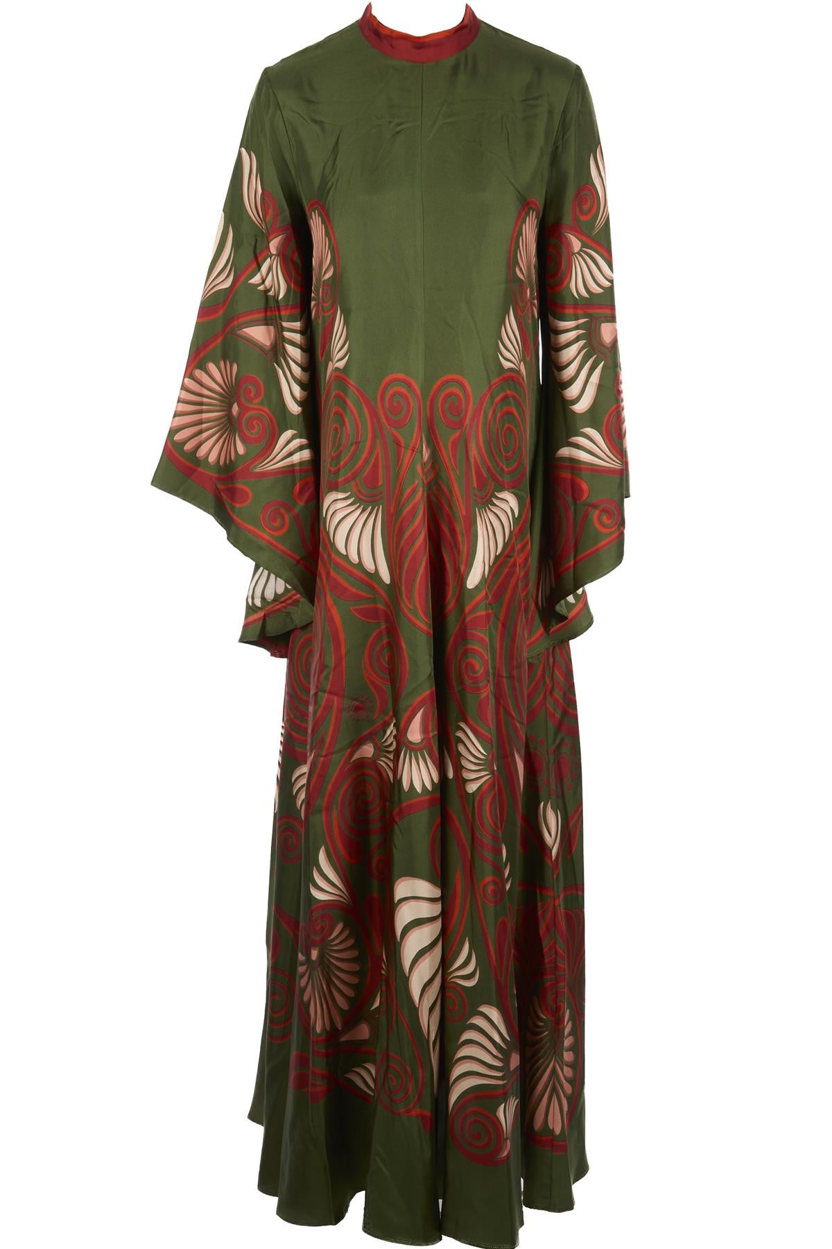 La Double J Green Silk Maxi Dress. Multicoloured. Long Sleeve. Crewneck. Slips on. No composition label. Small (UK 8, US 4, FR 36, IT 40). Bust: 36 in. Waist: 33 in. Hips: 35 in. Length: 56 in.