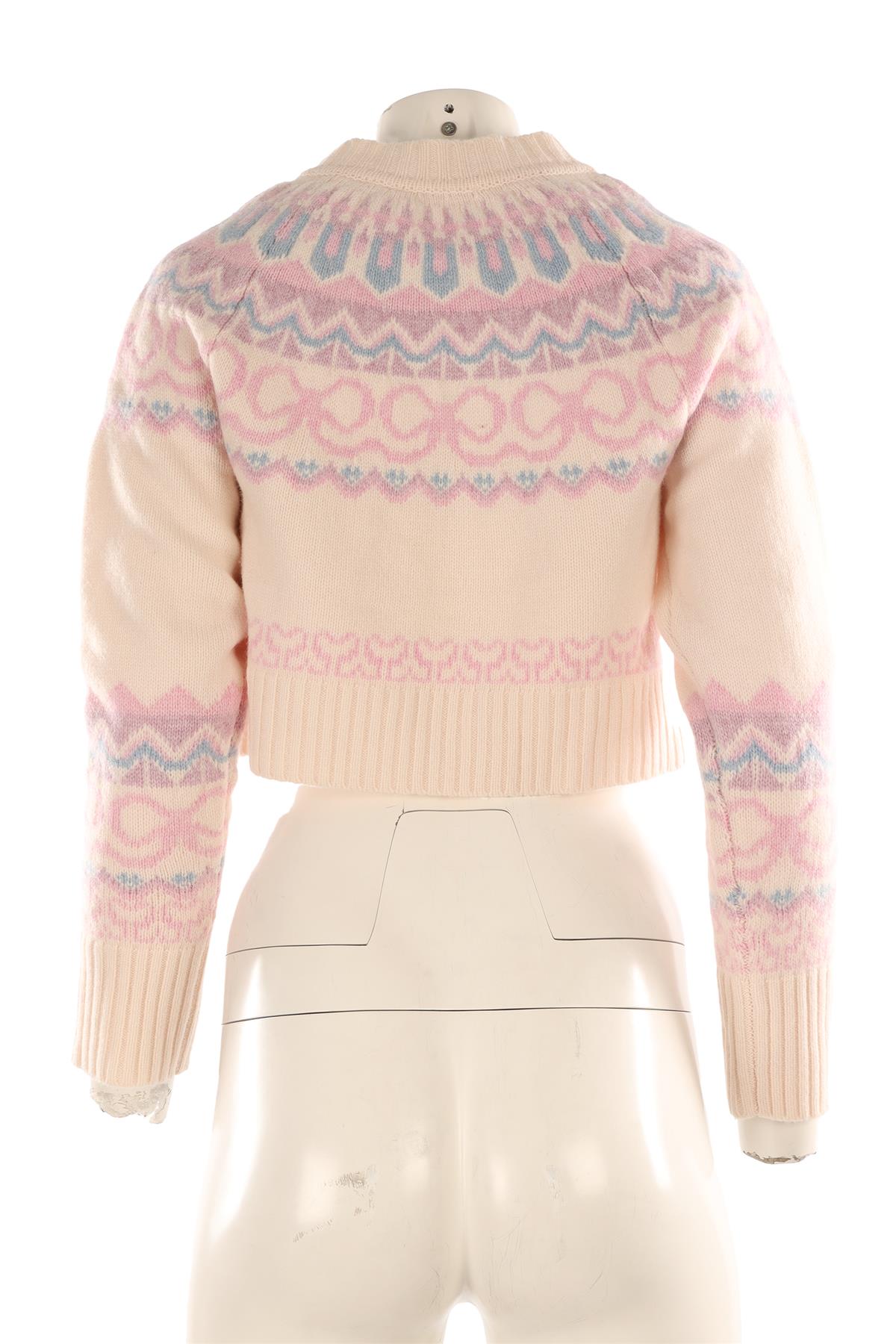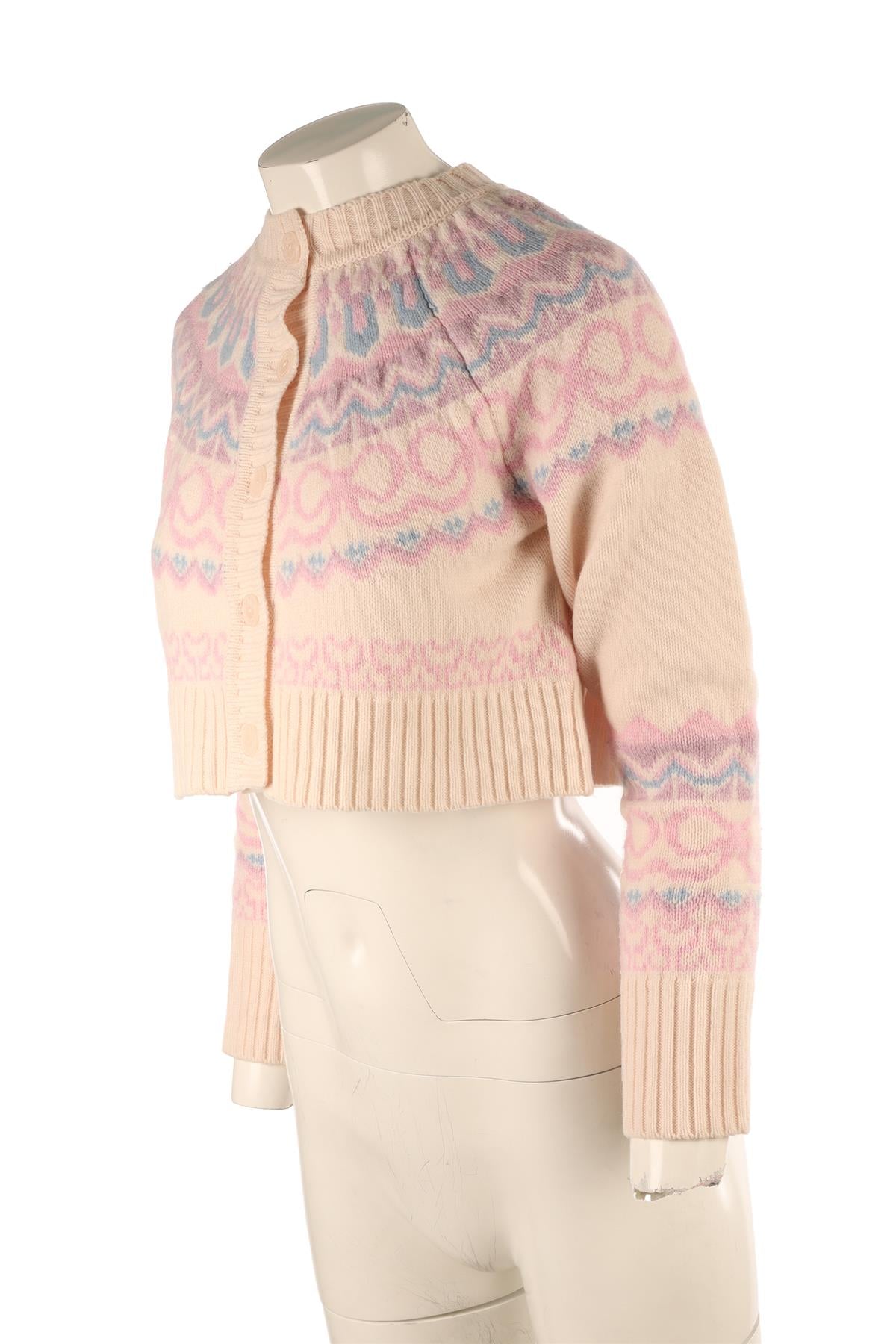 Loveshackfancy Multi Wool Cardigan. Multi. Long Sleeve. Boat Neck. Button fastening - Front. 100% Wool. XXSmall (UK 4, US 0, FR 32, IT 36). Bust: 36 in. Waist: 36 in. Hips: 36 in. Length: 15 in.