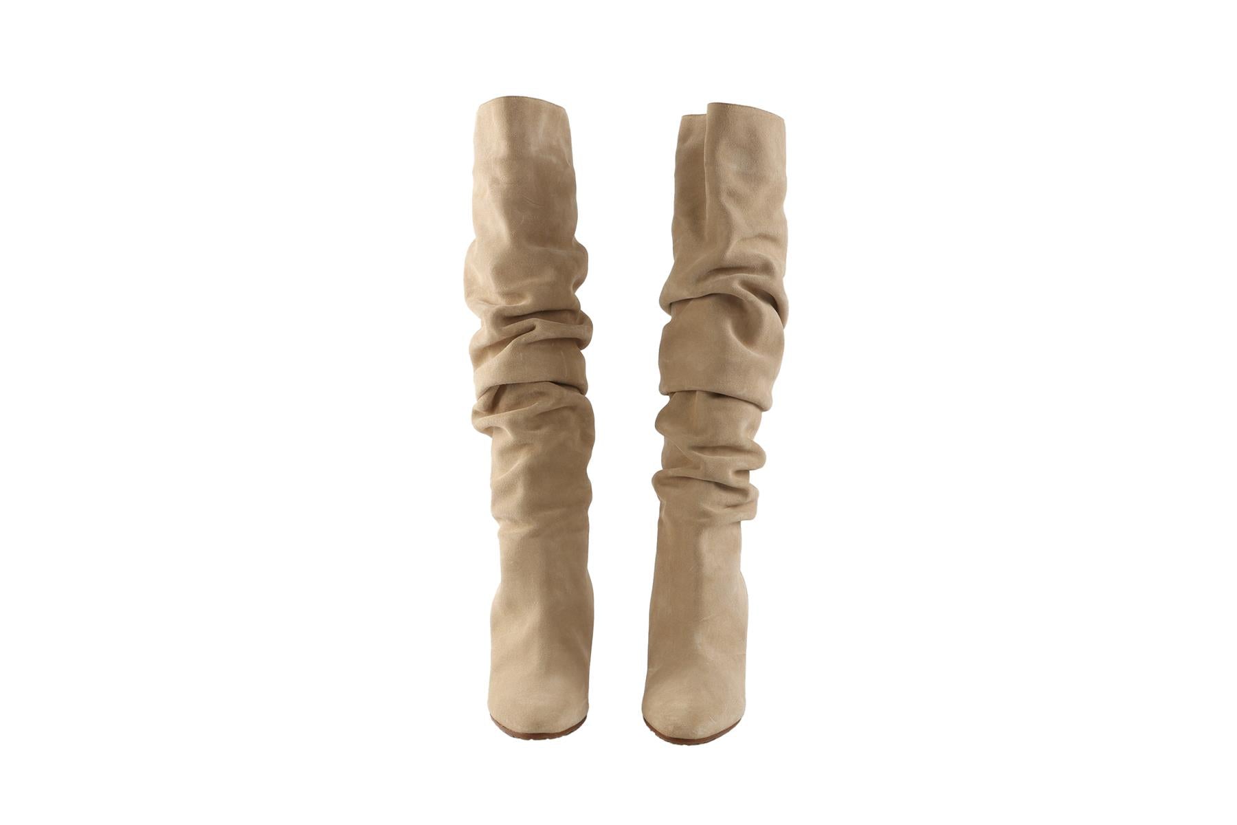 MANOLO BLAHNIK BEIGE SUEDE KNEE HIGH BOOTS EU 38.5 UK 5.5 US 8.5